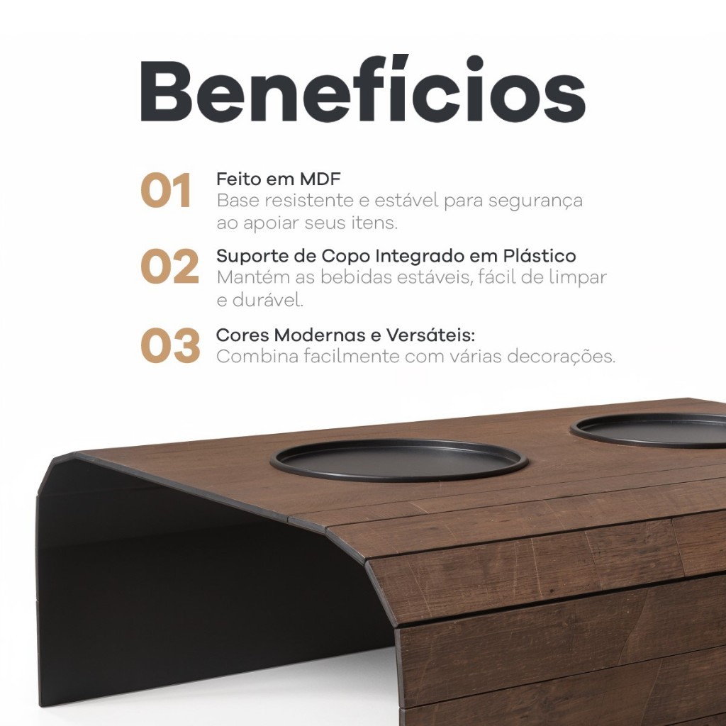 Esteiras Simples Apoio Para Sofá Com Suporte Porta Copos Mdf Decoração Sala Modelos e Cores Variados