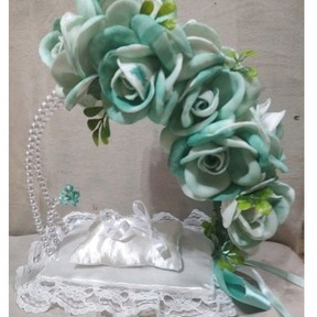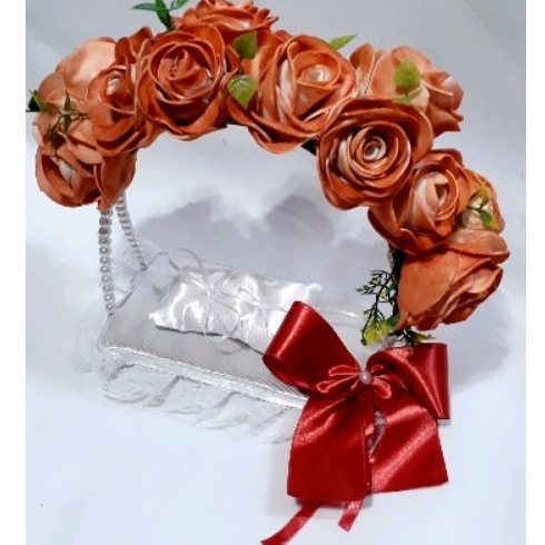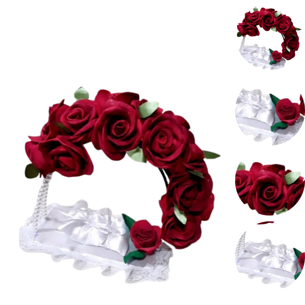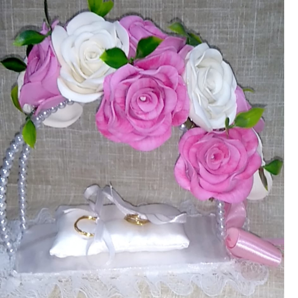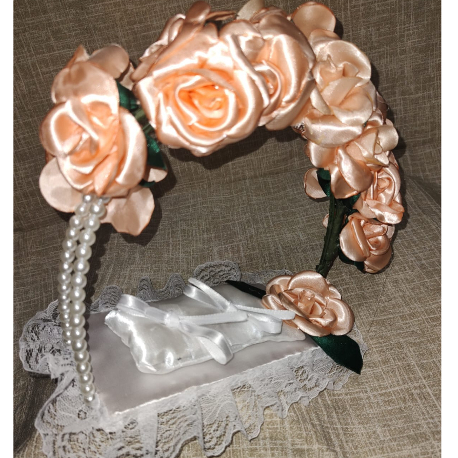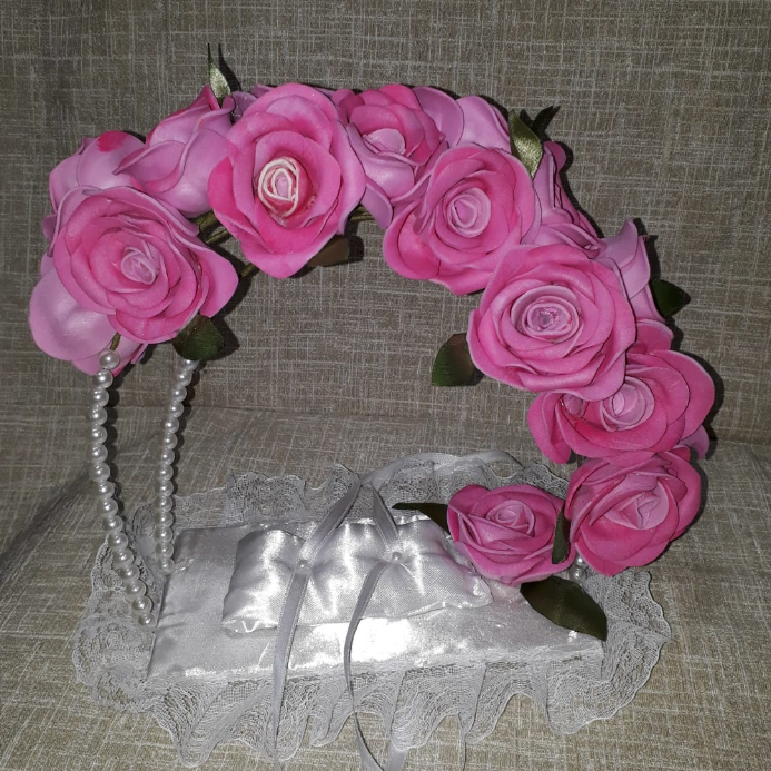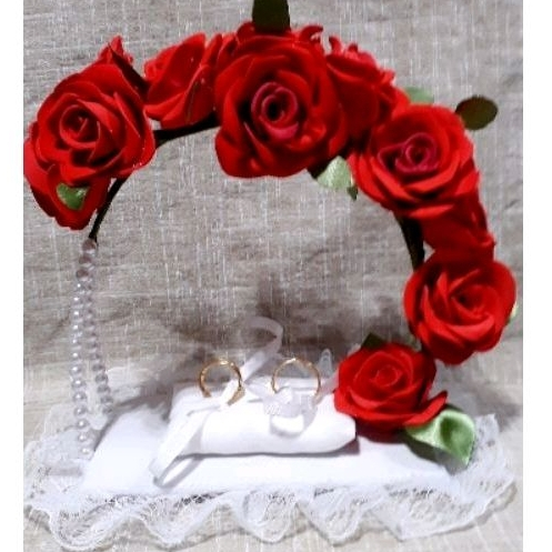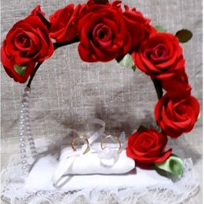 Porta Alianças de Flores Rosas para Casamento Religioso, e Civil.