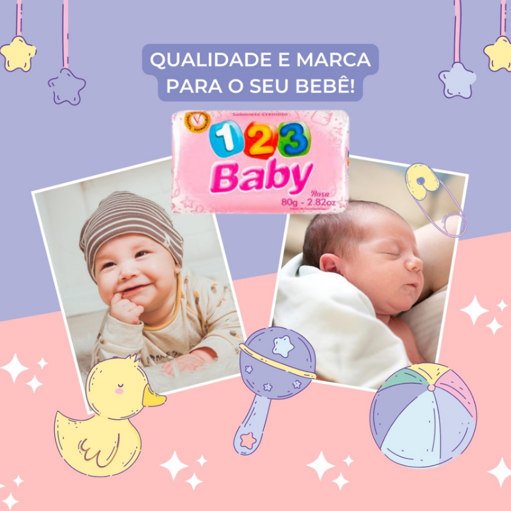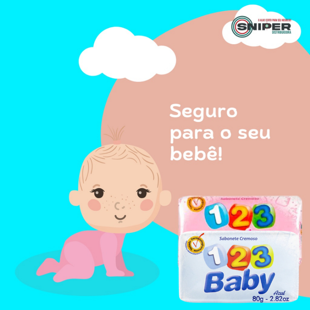 Kit 12 Sabonetes Infantis 123 Baby Azul