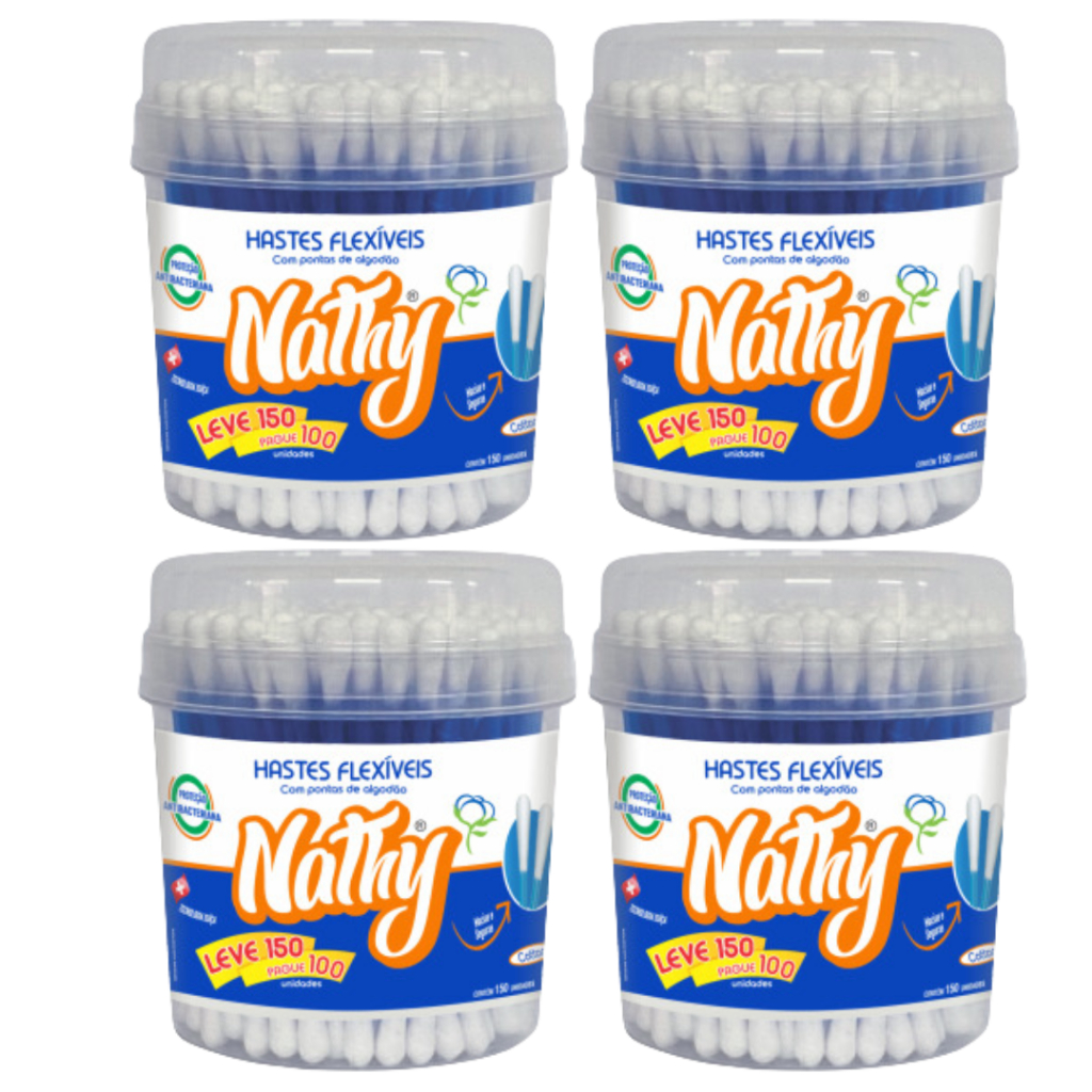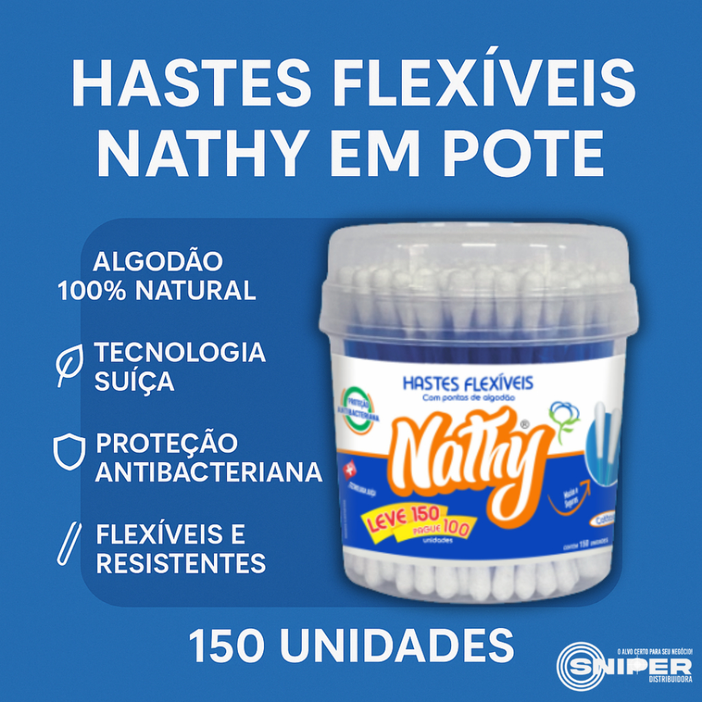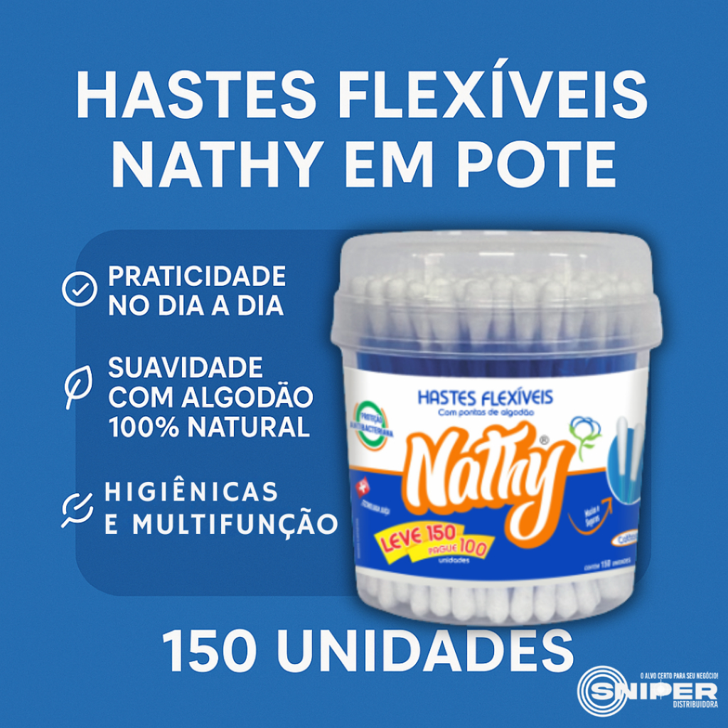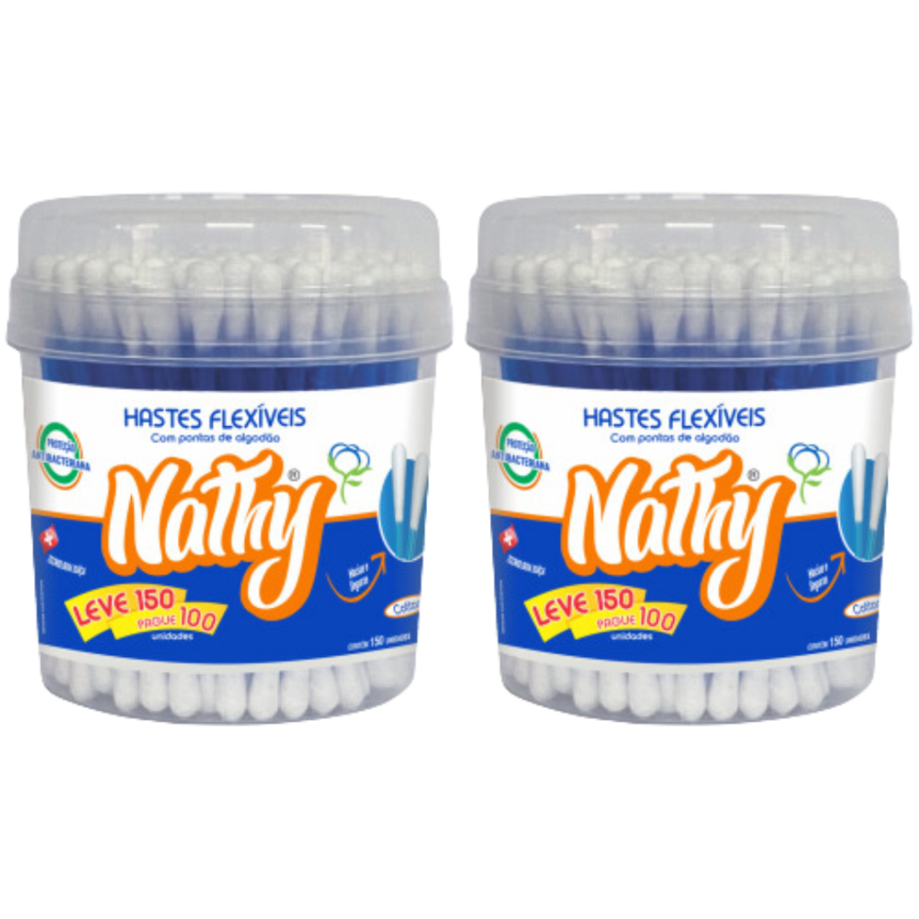 Hastes Flexíveis + Pote Cotonetes 150 Unidades Nathy