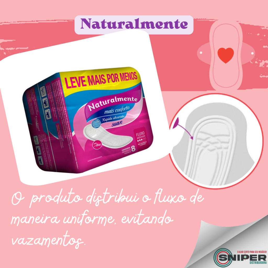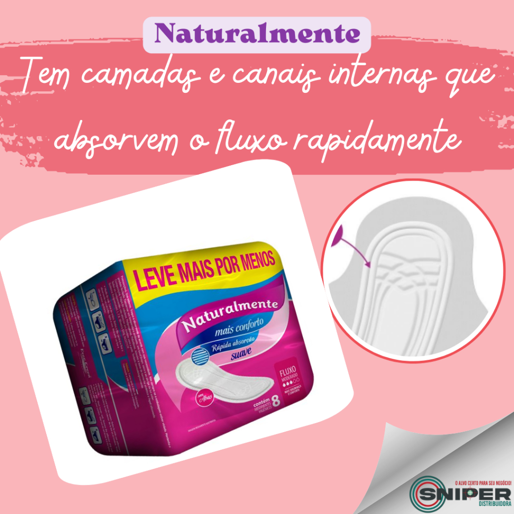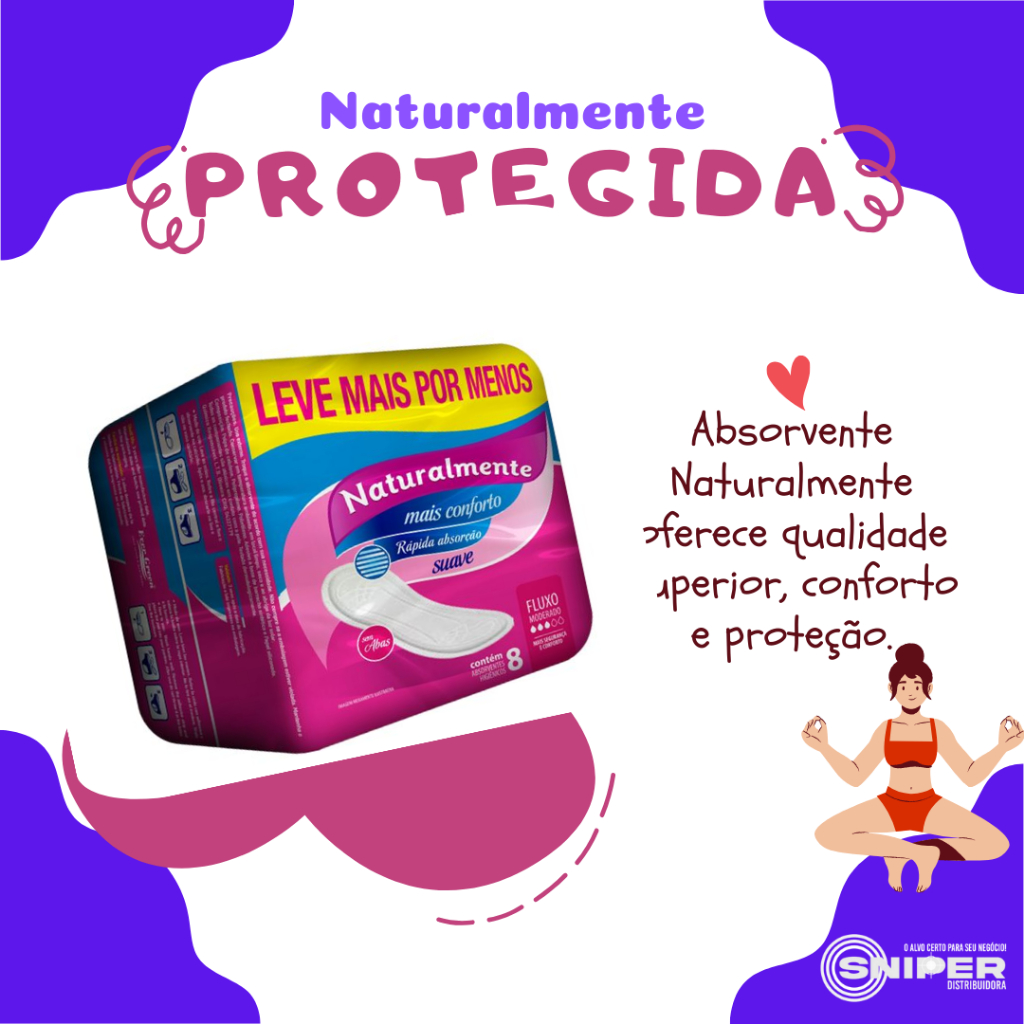 Absorvente Sem Abas Kit 12 Pacotes com 8 Unidades Naturalmente Gel Mais Conforto e Proteção