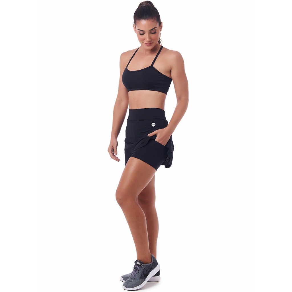 Short Saia Fly Preto Com Bolso Snd Fitness