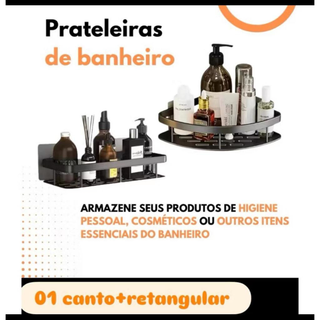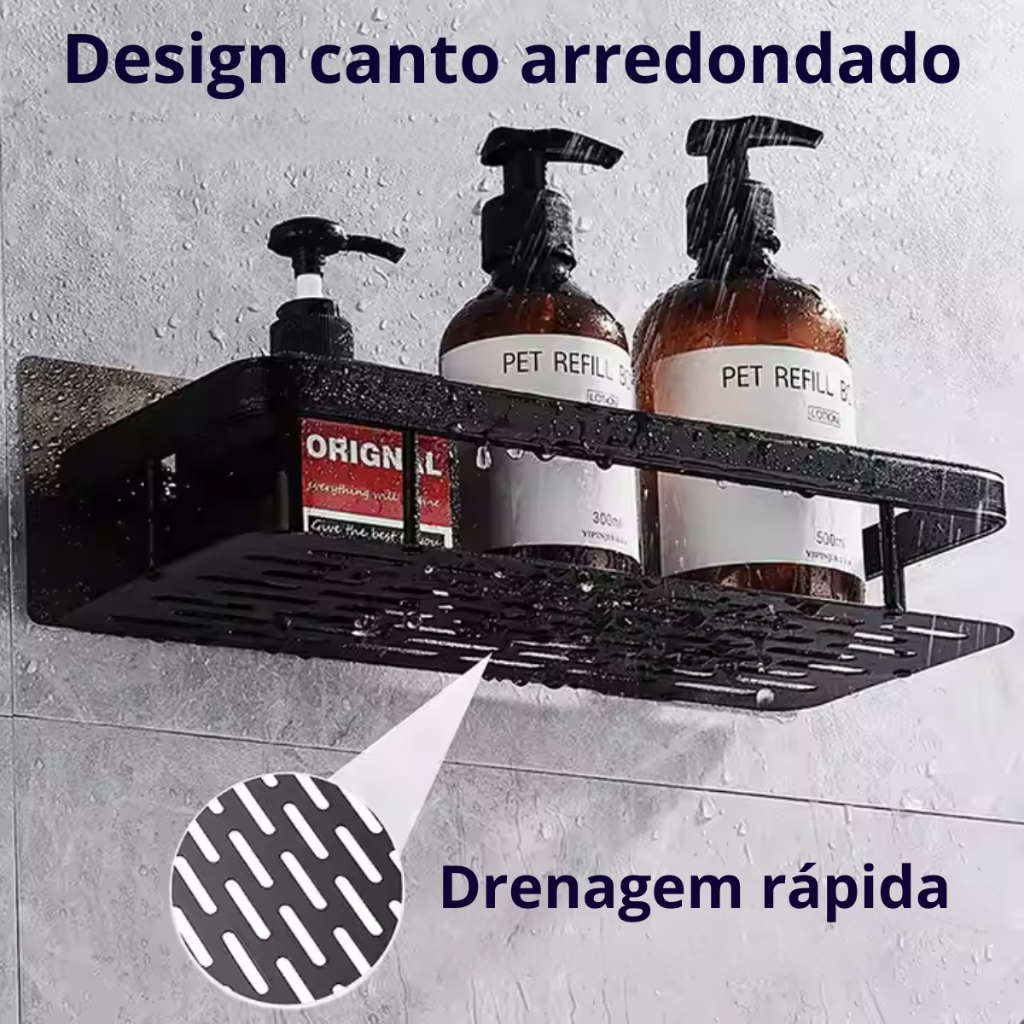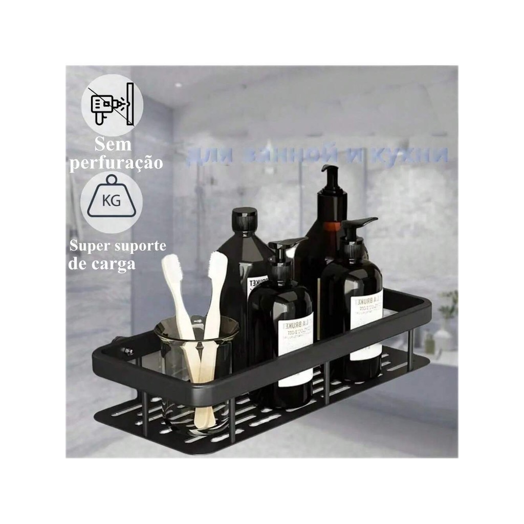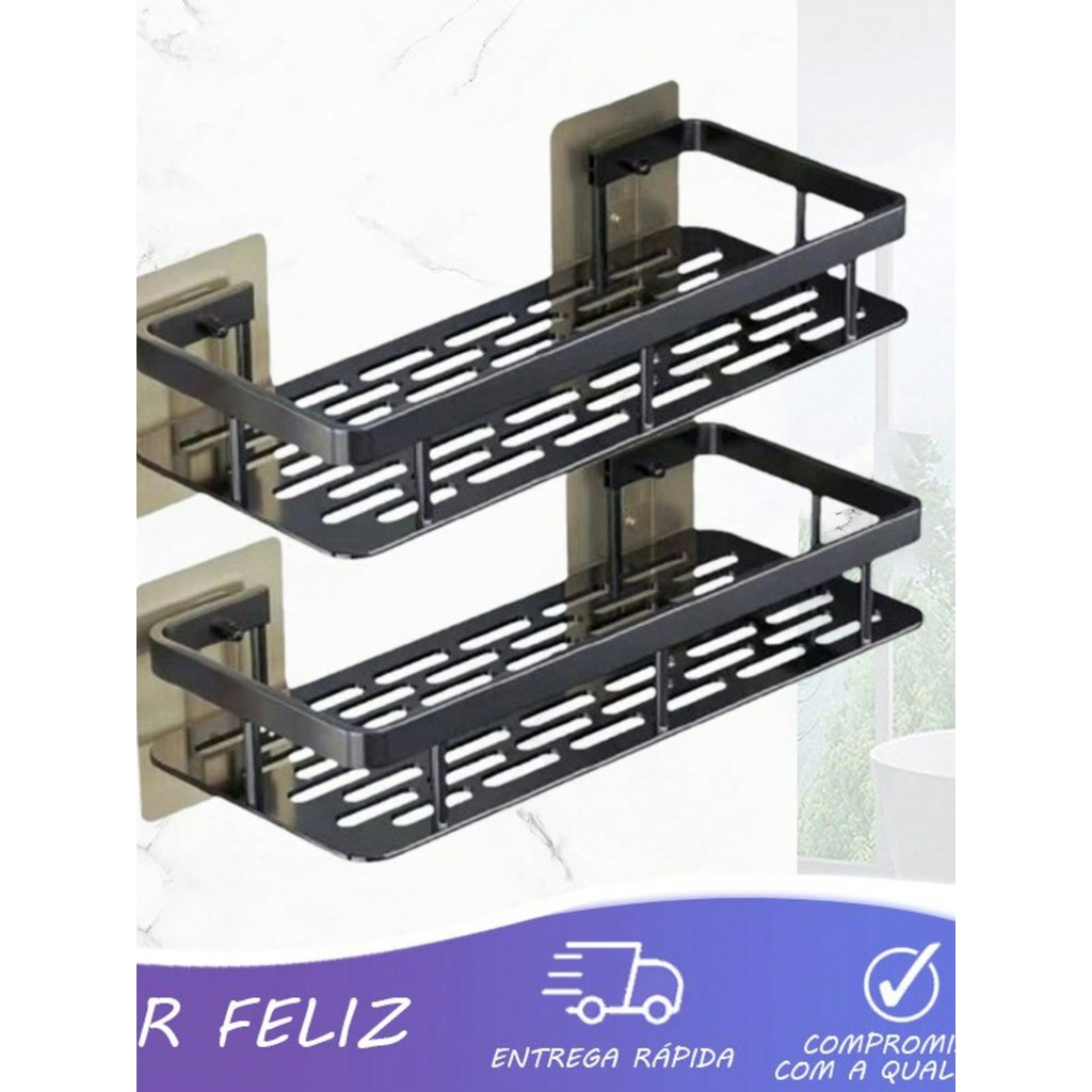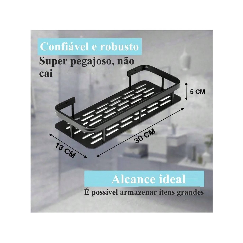 KIT SUPORTE PRATELEIRA ORGANIZADOR DE ALUMINIO RETANGULAR PRETO