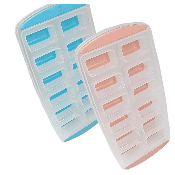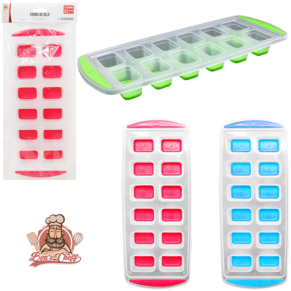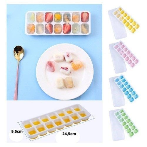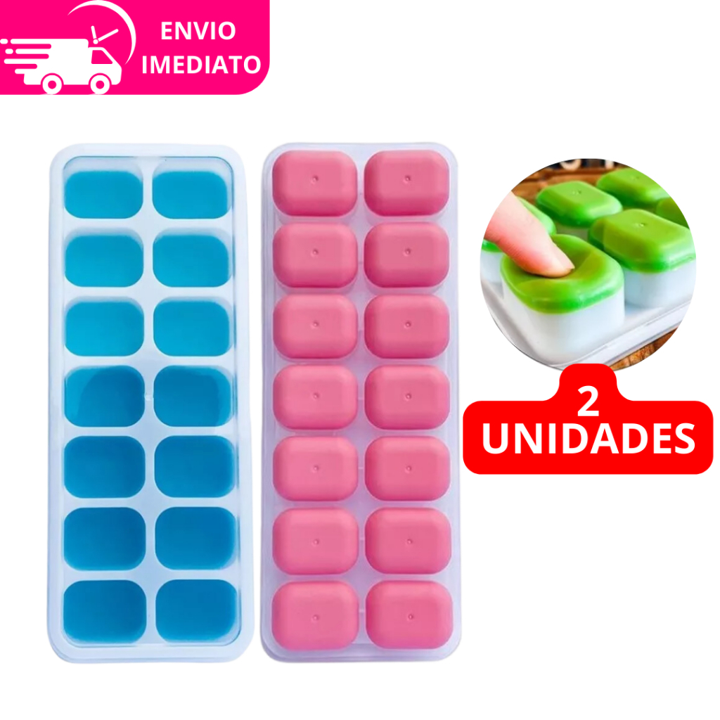 Kit Formas de Gelo Silicone com Tampa Rígida Flexível Fundo 14 Cubos Retangular Multiuso Lavável