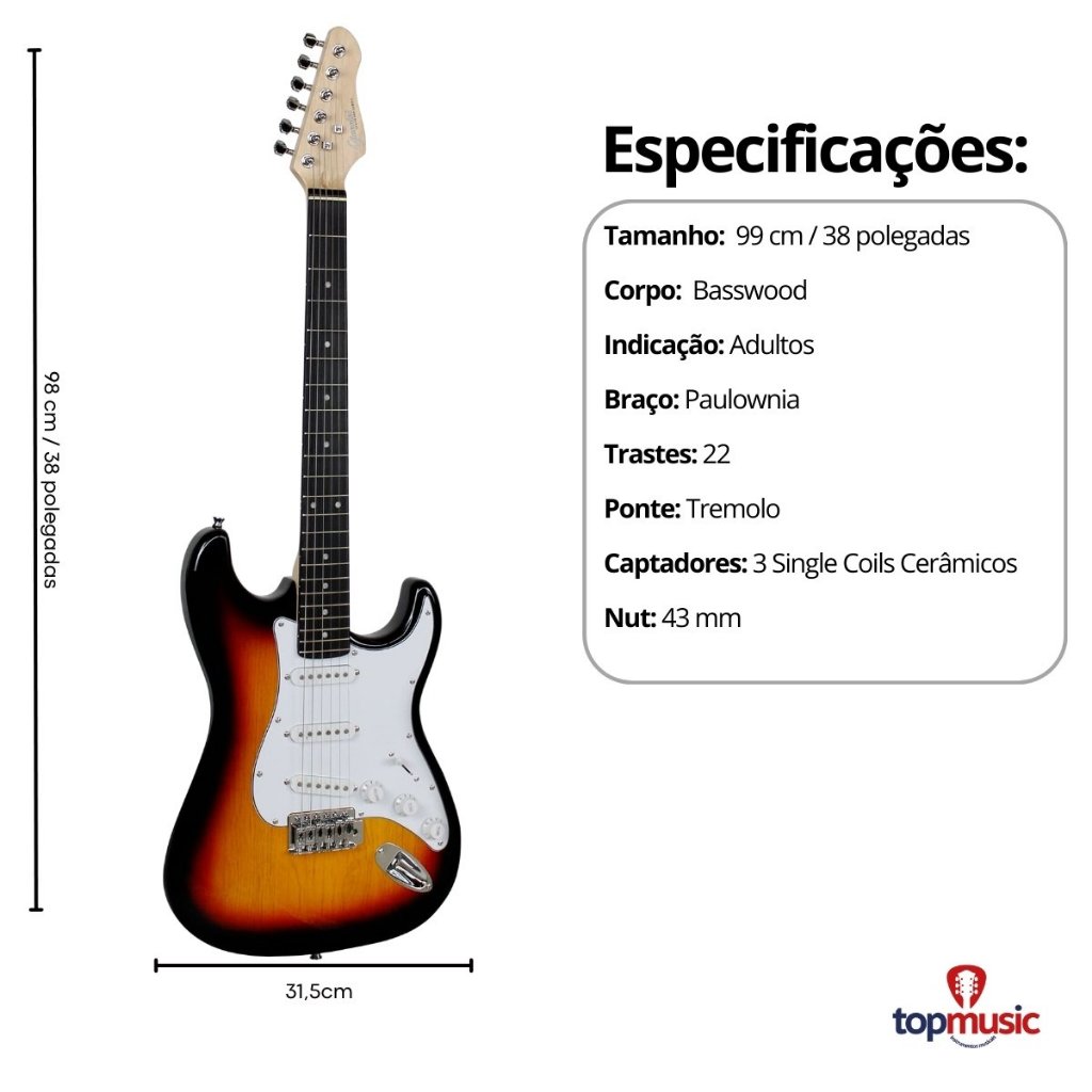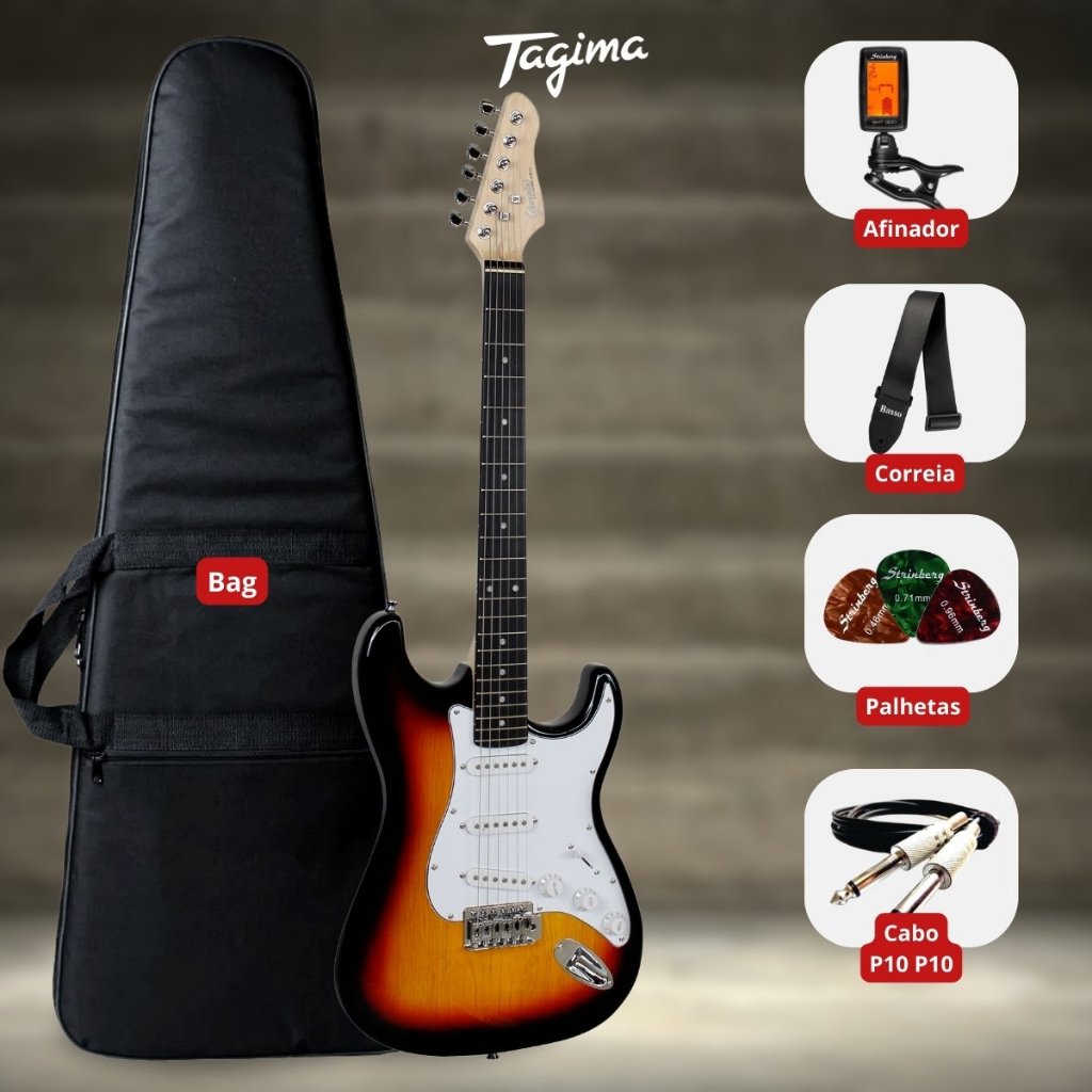 Guitarra Elétrica Stratocaster Estudante Iniciante + Kit De Acessórios
