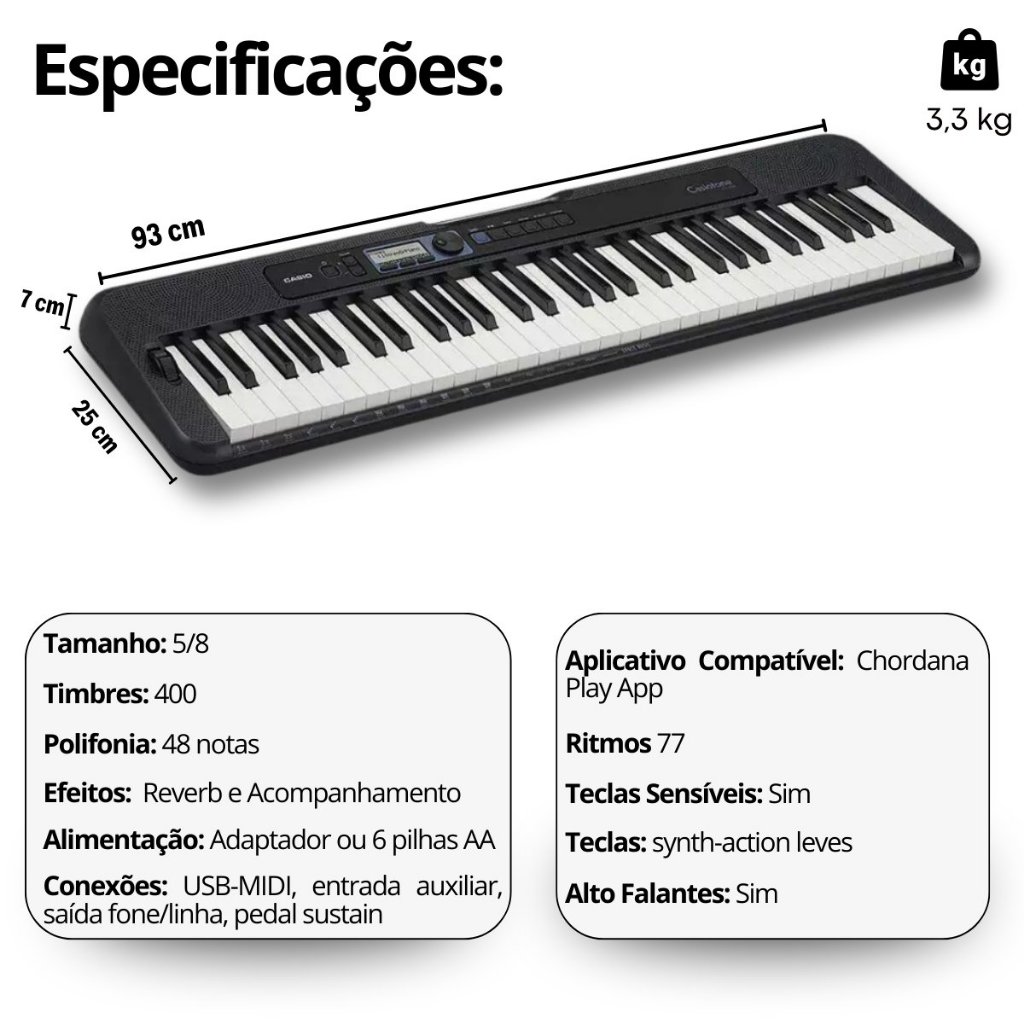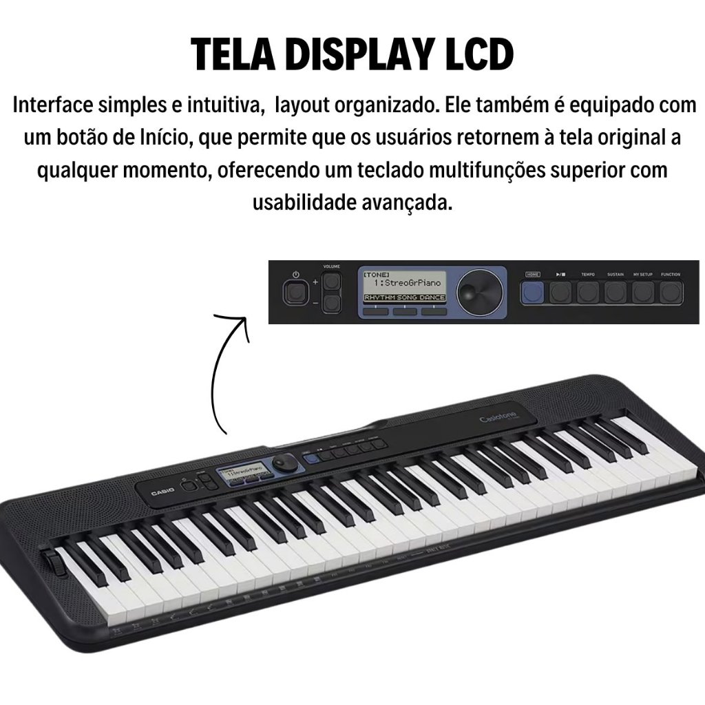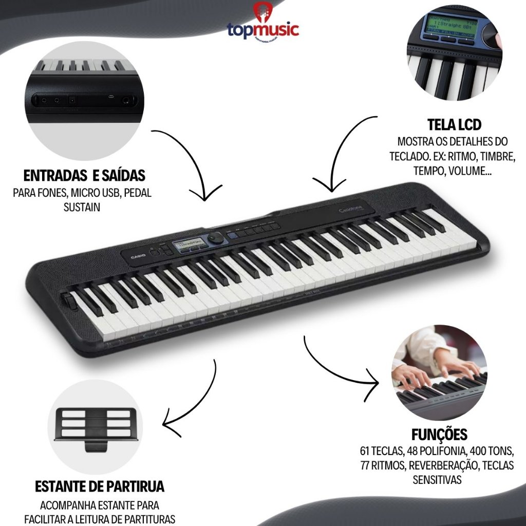 Kit Teclado Musical Casio CT-S300C2 Teclas Sensitivas + Capa Suporte