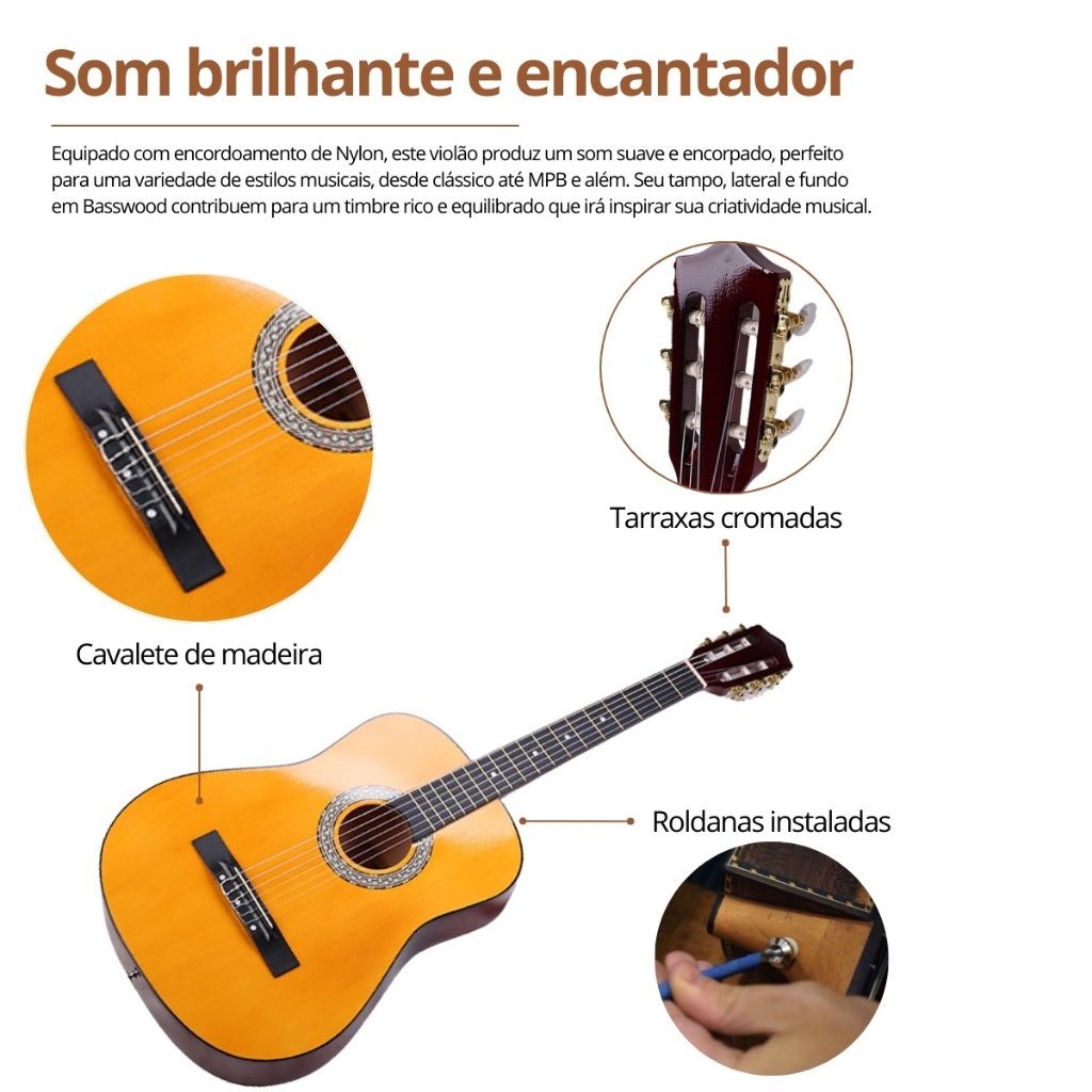 Kit Violão Acústico Estudante Bravo An100 Nylon Clássico + Acessórios