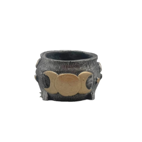 Incensário Caldeirão Triluna em Resina Preto - Porta Incenso Decorativo Místico Wicca