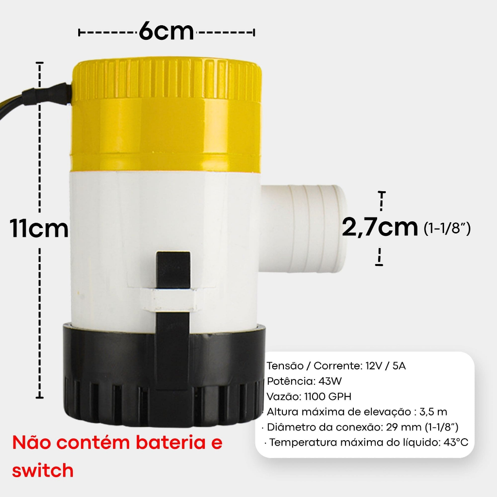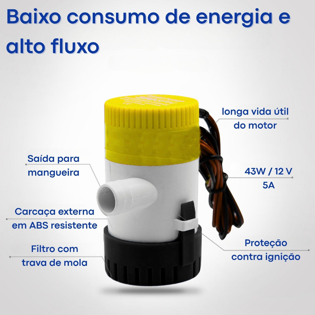 Bomba Porão Submersível com 1100gph de Vazão Alta para Barcos e Lanchas