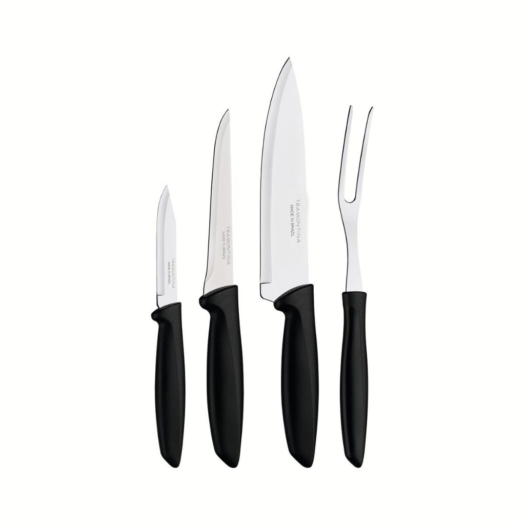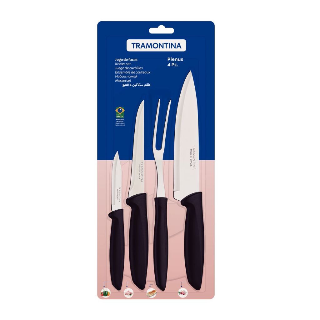 Jogo de Facas Tramontina Plenus com Lâminas em Aço Inox e Cabos de Polipropileno Preto 4 Peças