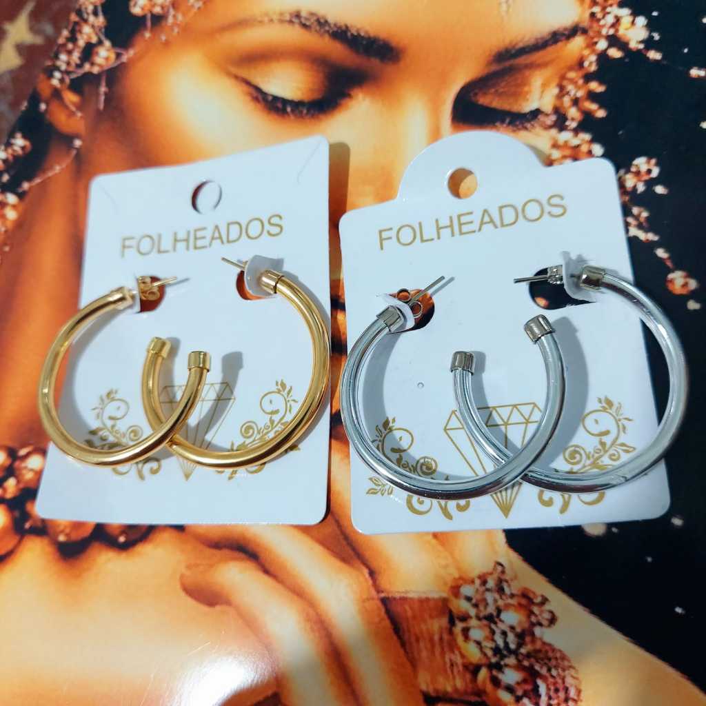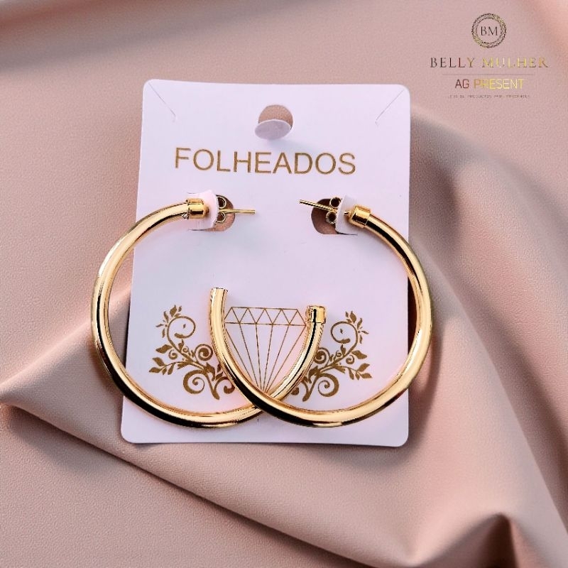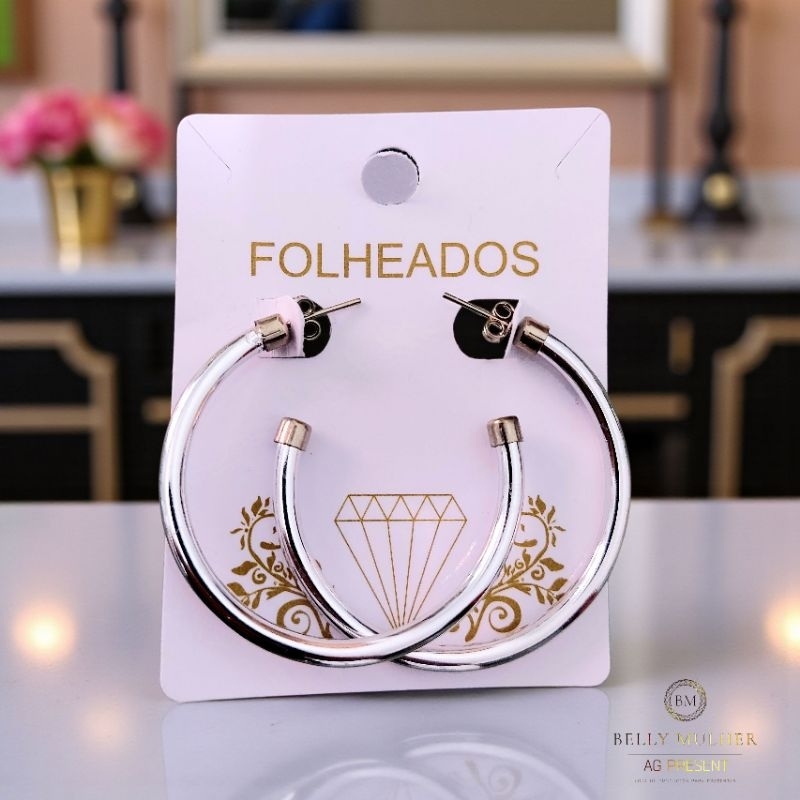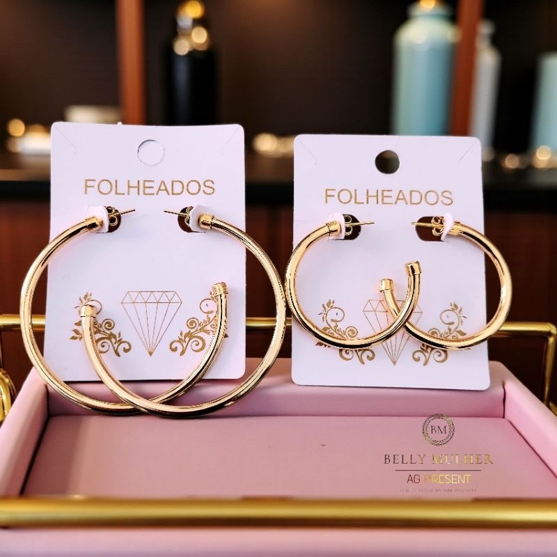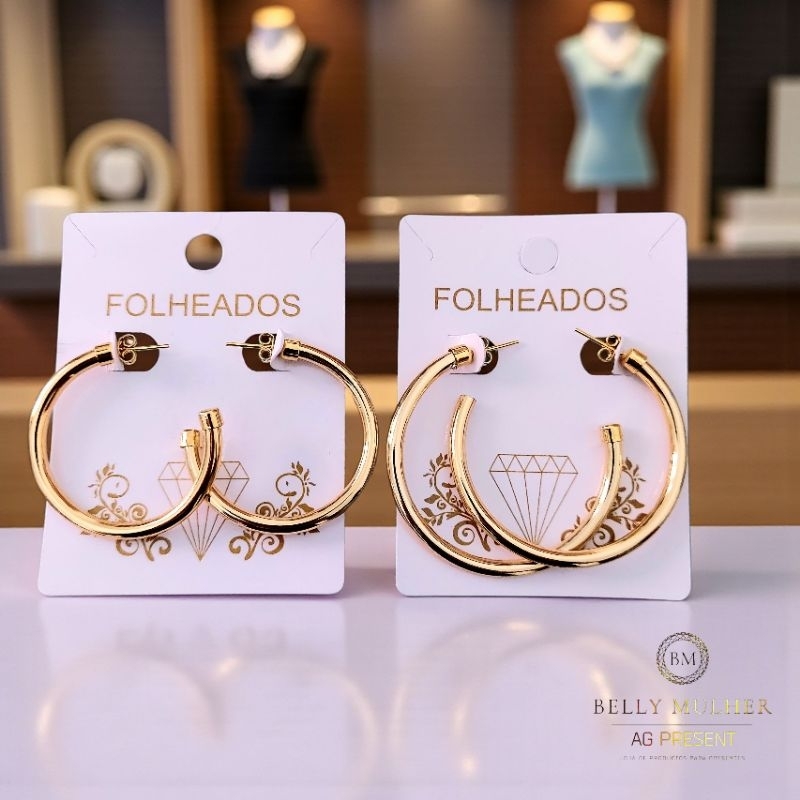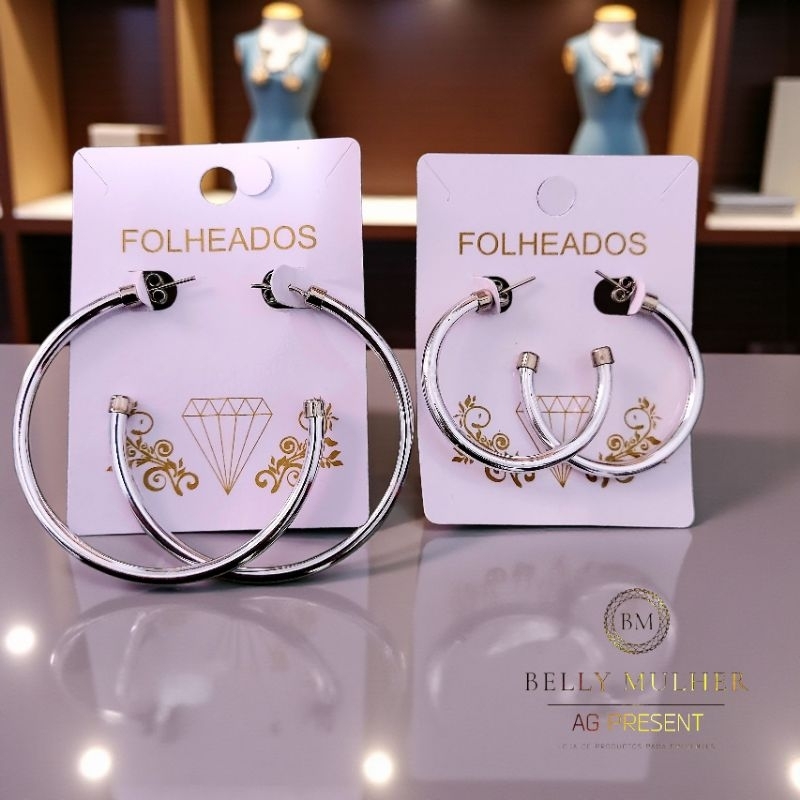 Brincos Argola Feminino Fio Acabamento Polido Redondo Tamanho Médio Folheado a Prata925 e Ouro18K
