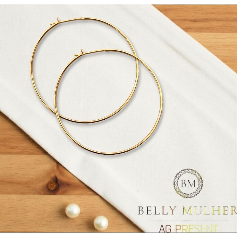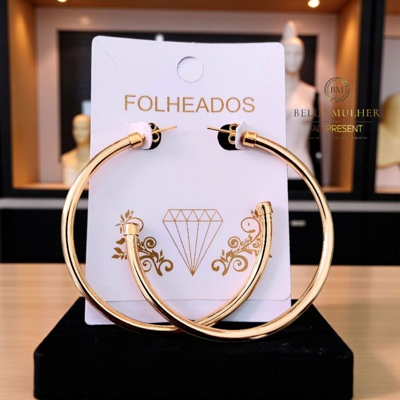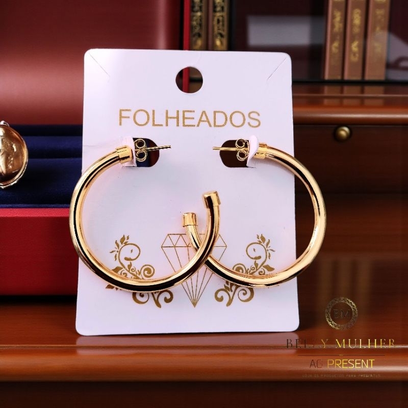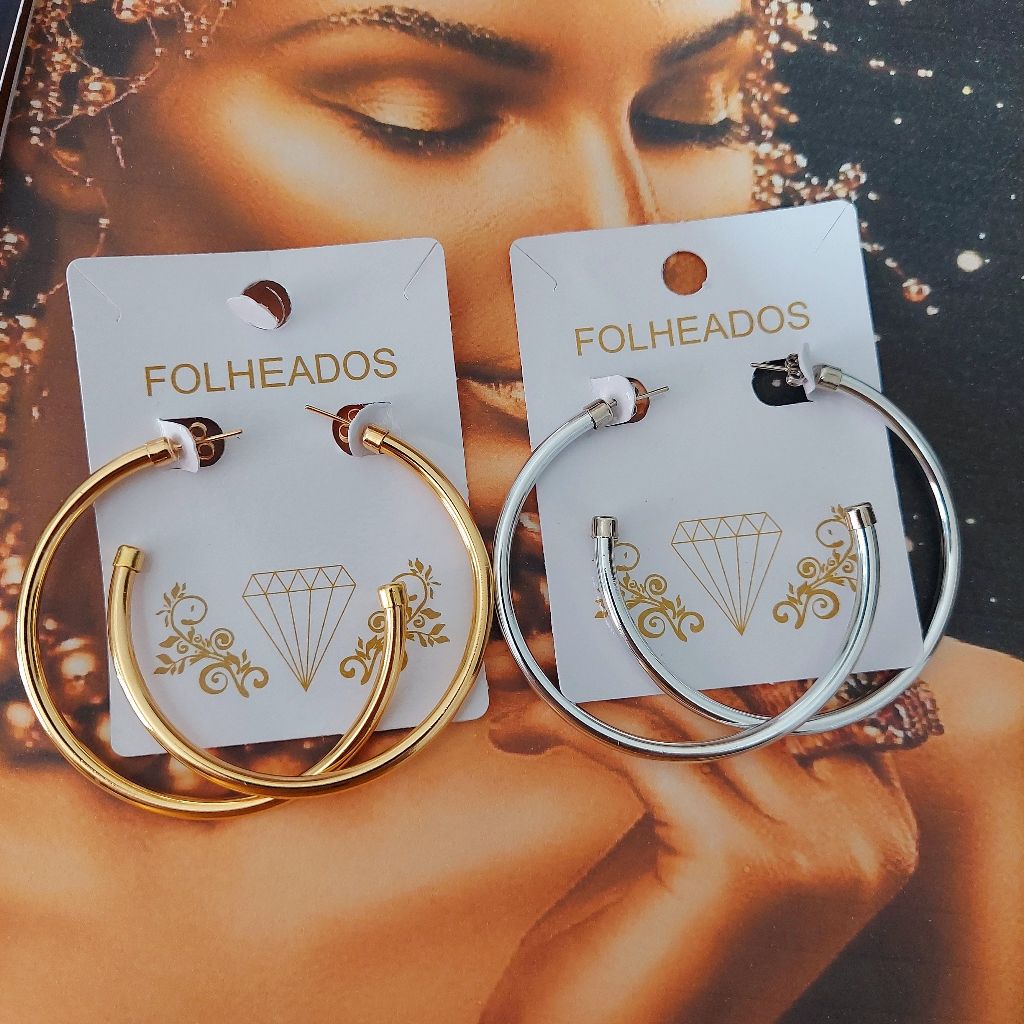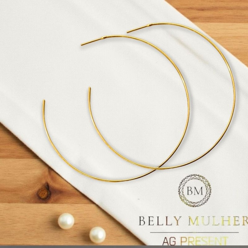 Brincos Argola Feminino Fio Acabamento Polido Redondo Tamanho Médio Folheado a Prata925 e Ouro18K