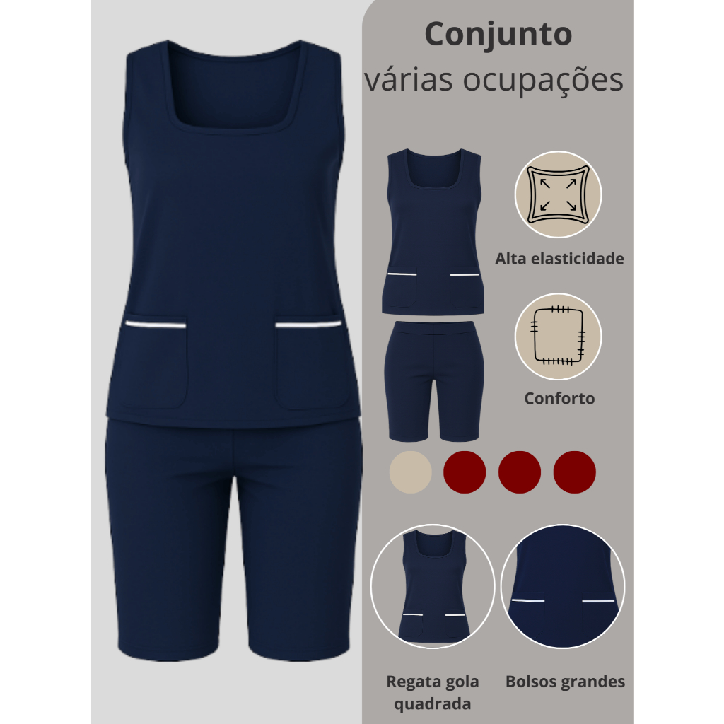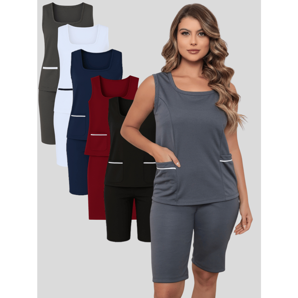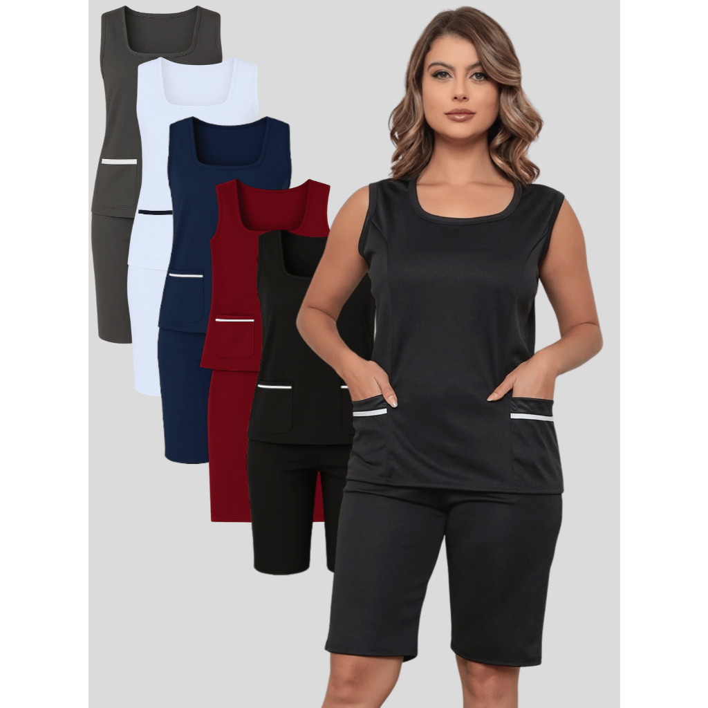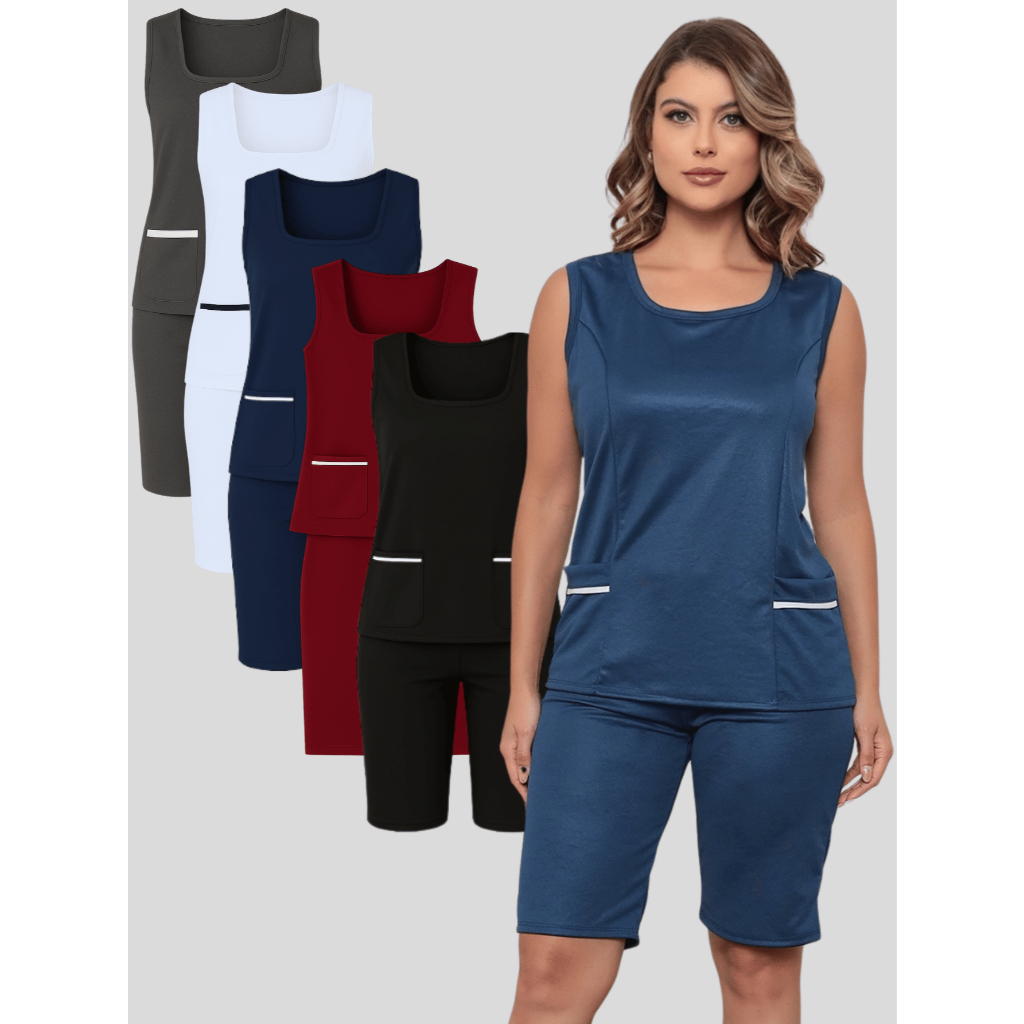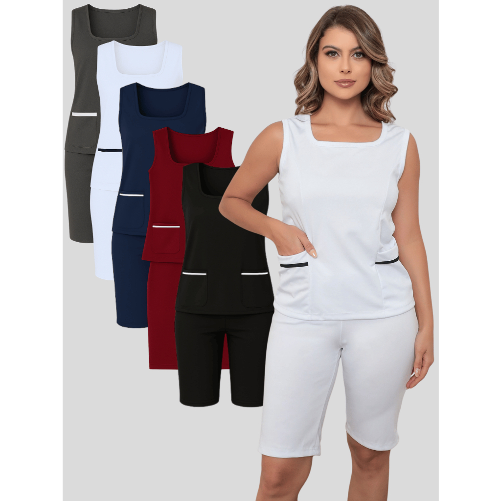 Uniforme Farda de Babá Domestica Cuidadora Copeira Diarista Auxiliar de Serviços Gerais Manicure Esteticista com bolso
