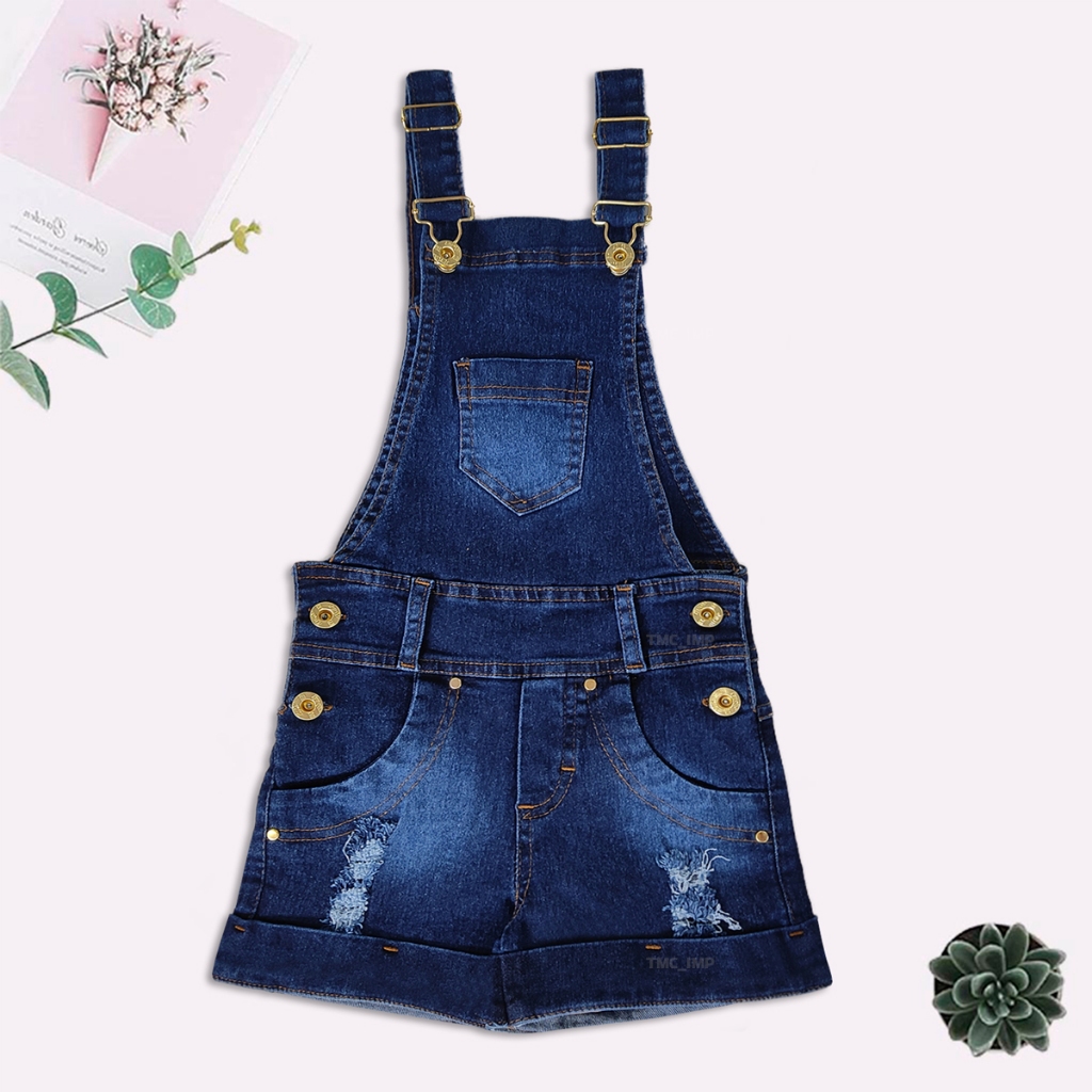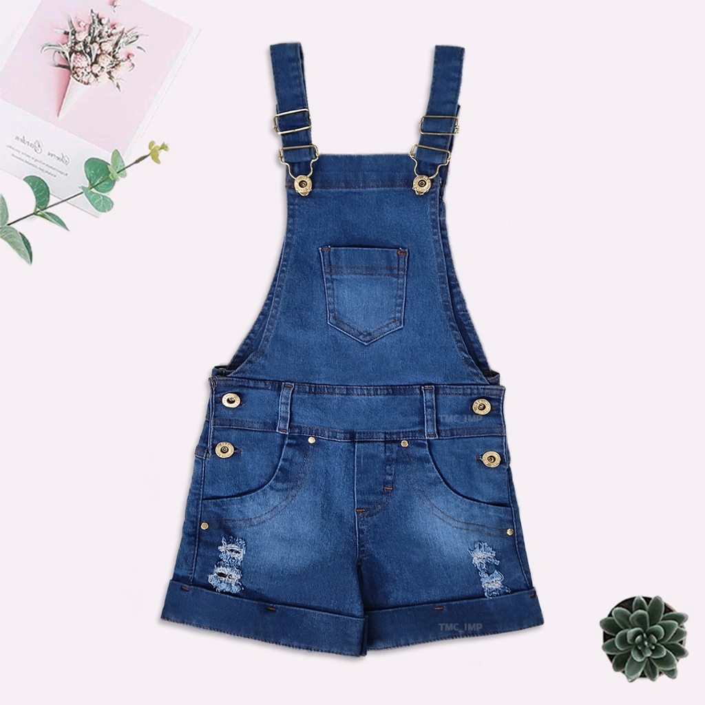 Jardineira Infantil Macaquinho Jeans Feminino Juvenil 04-16