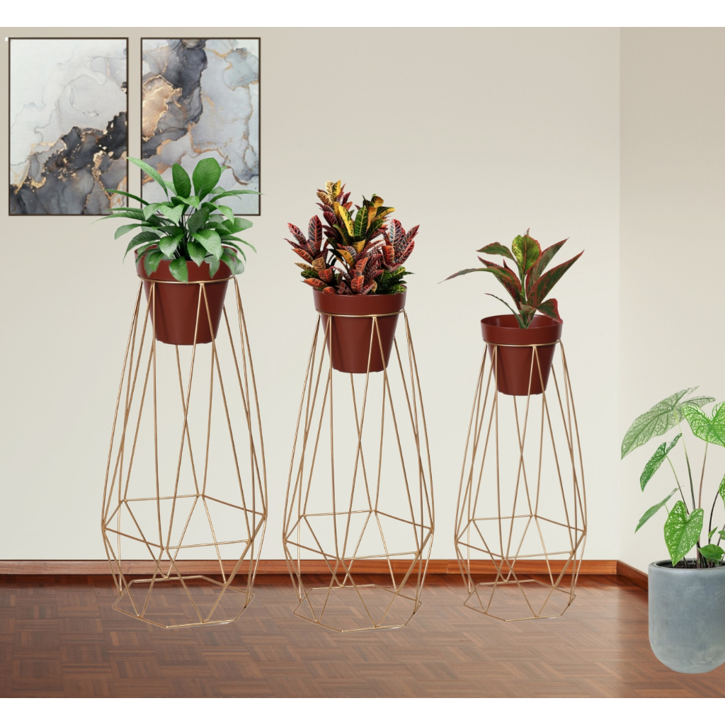3 Suporte Para Vaso Tripé Plantas Chão Diamante