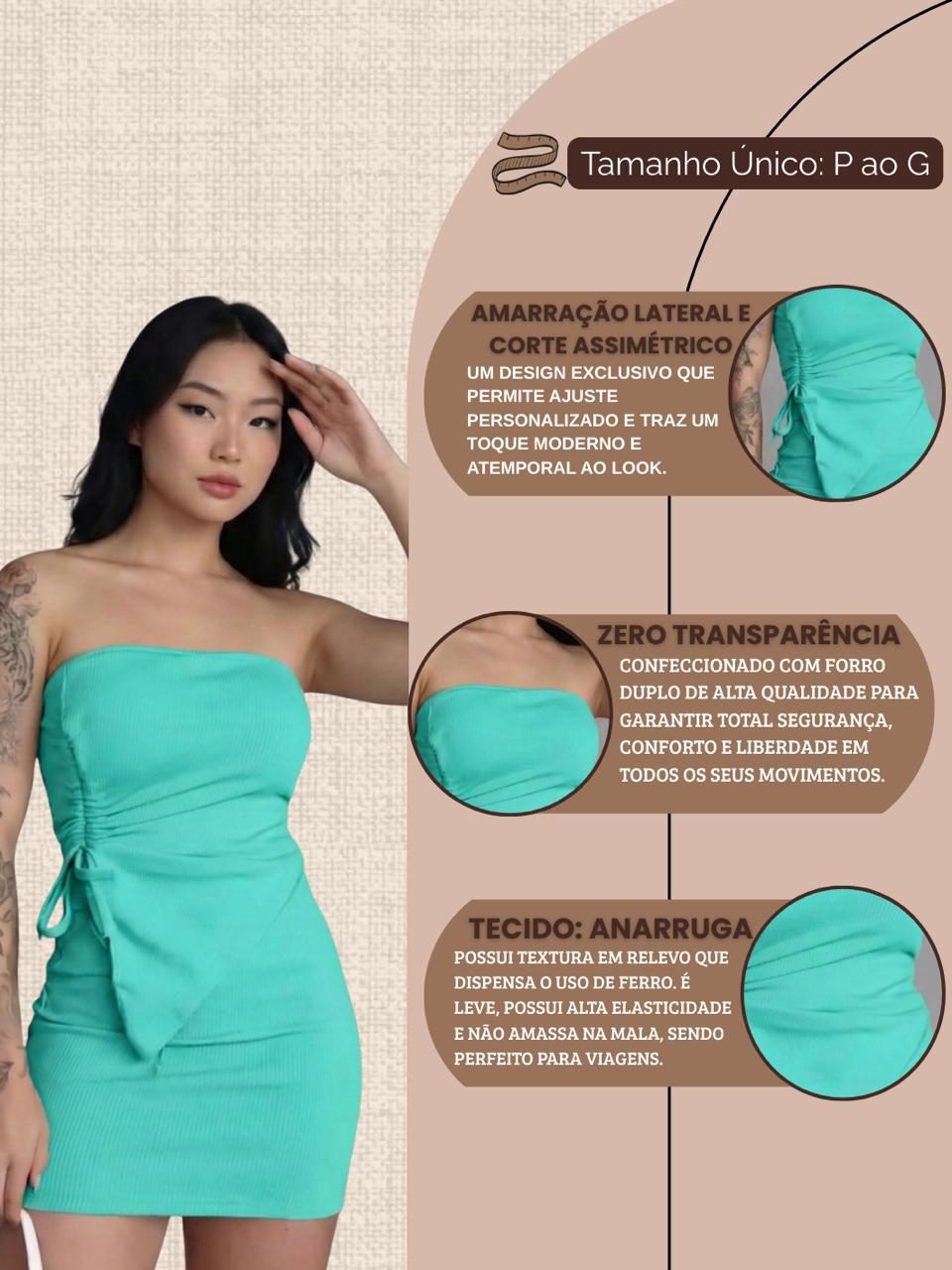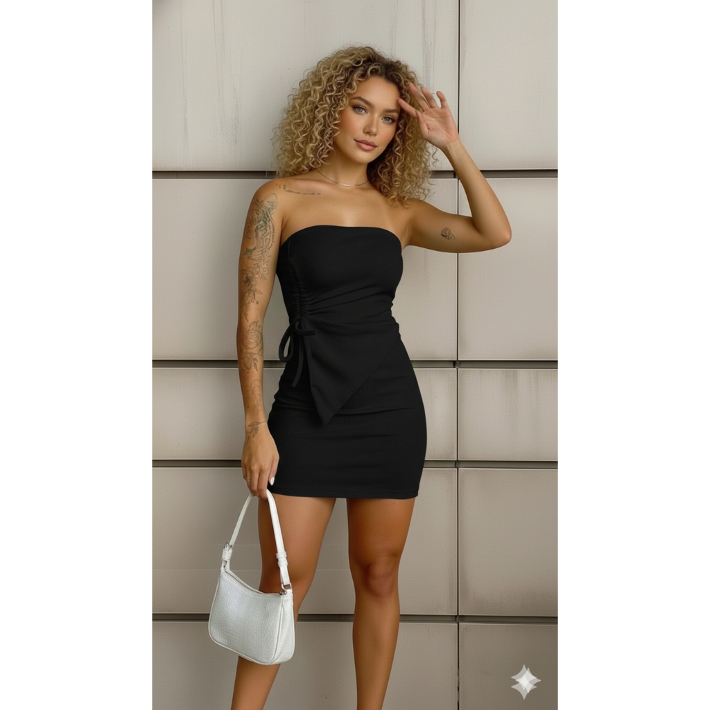 Conjunto Feminino Tomara Que Caia Franzido Lateral Saia Curta Mini Tubinho Assimétrica Gringa