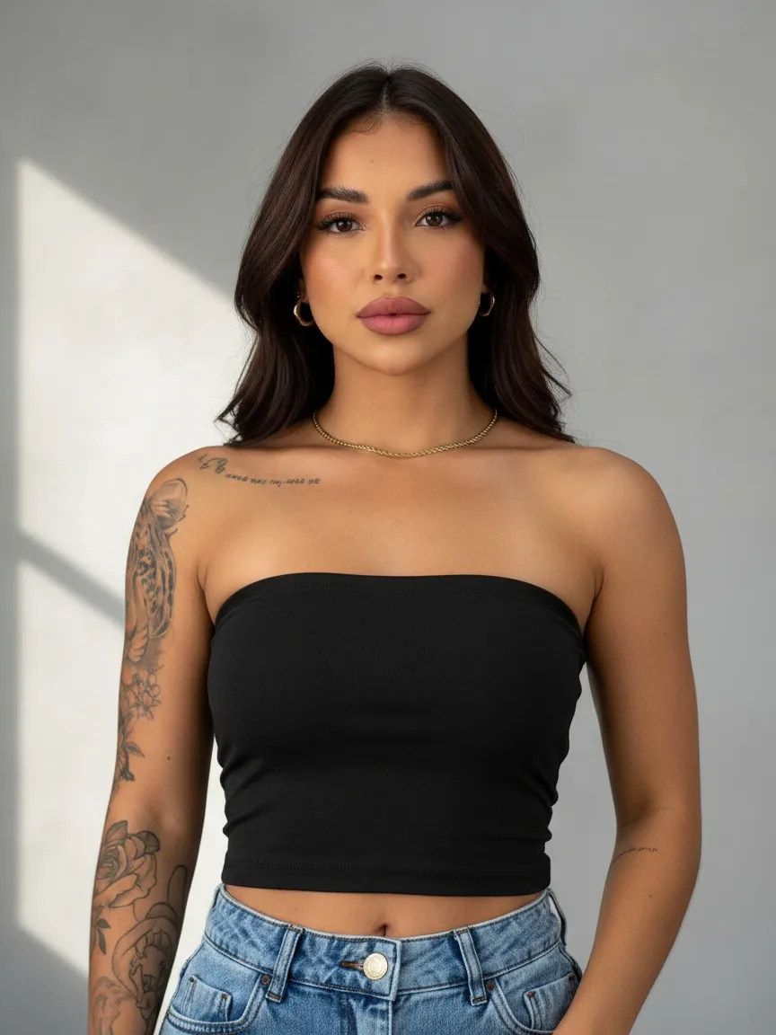 Top Tube Cropped Faixa Suplex Premium Tomara que caia Forrado Forro Duplo Tubinho Básico Casual