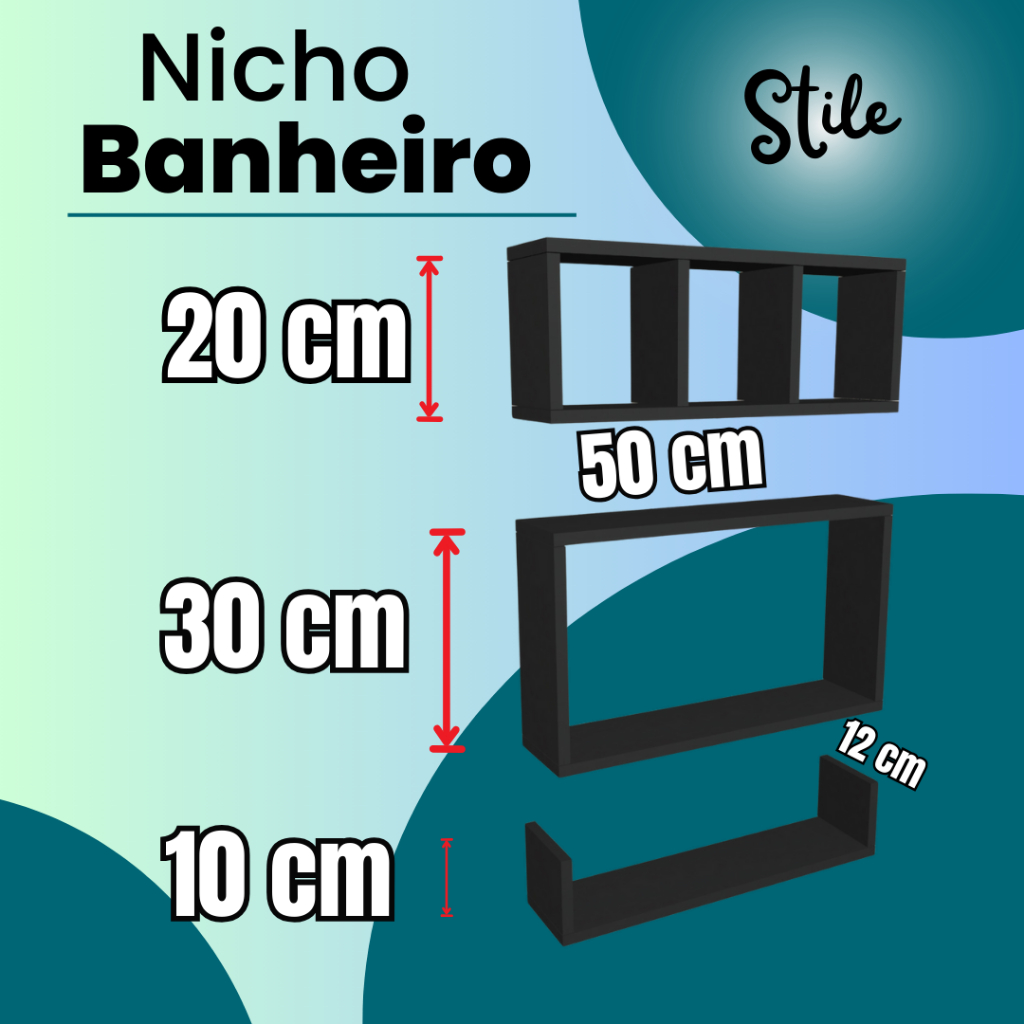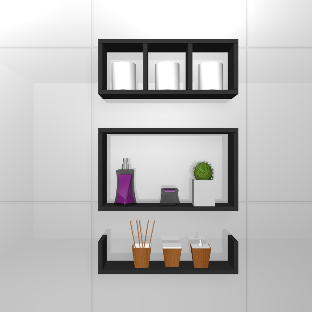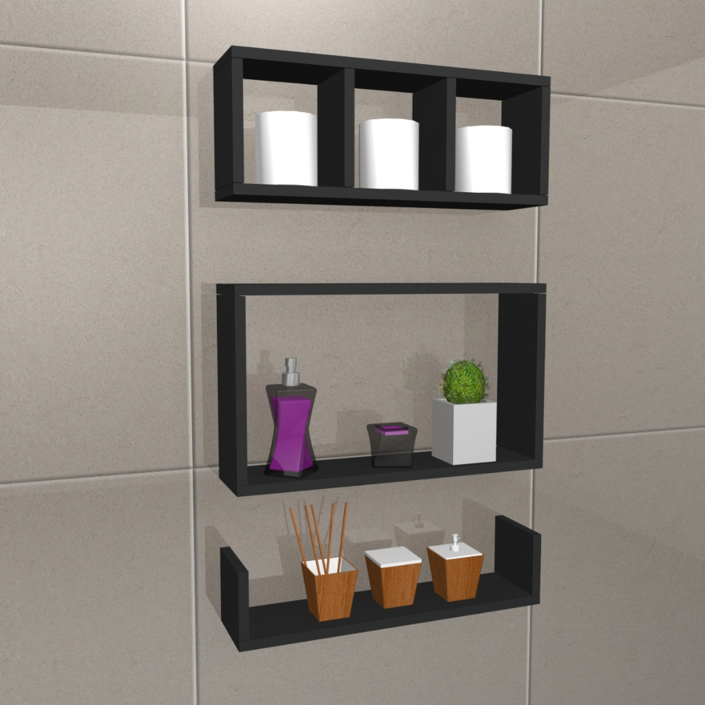 Kit 3 Nichos em MDF Preto para banheiro – Moderno, Montado e Pronto para Instalar 50 cm