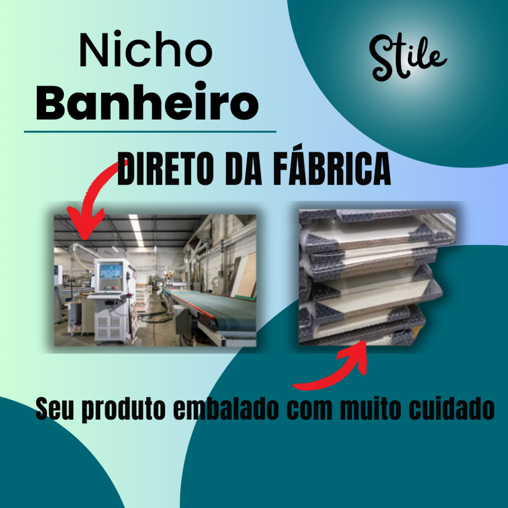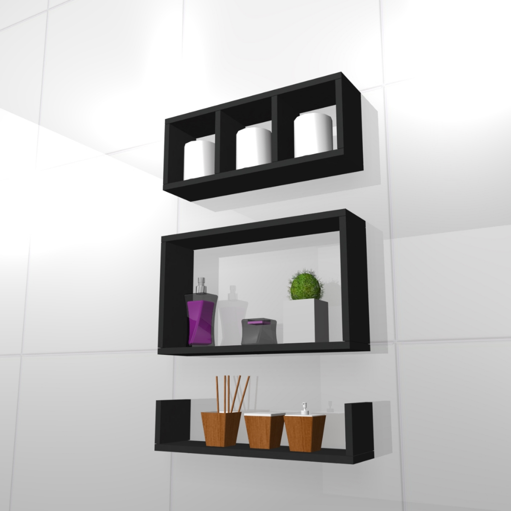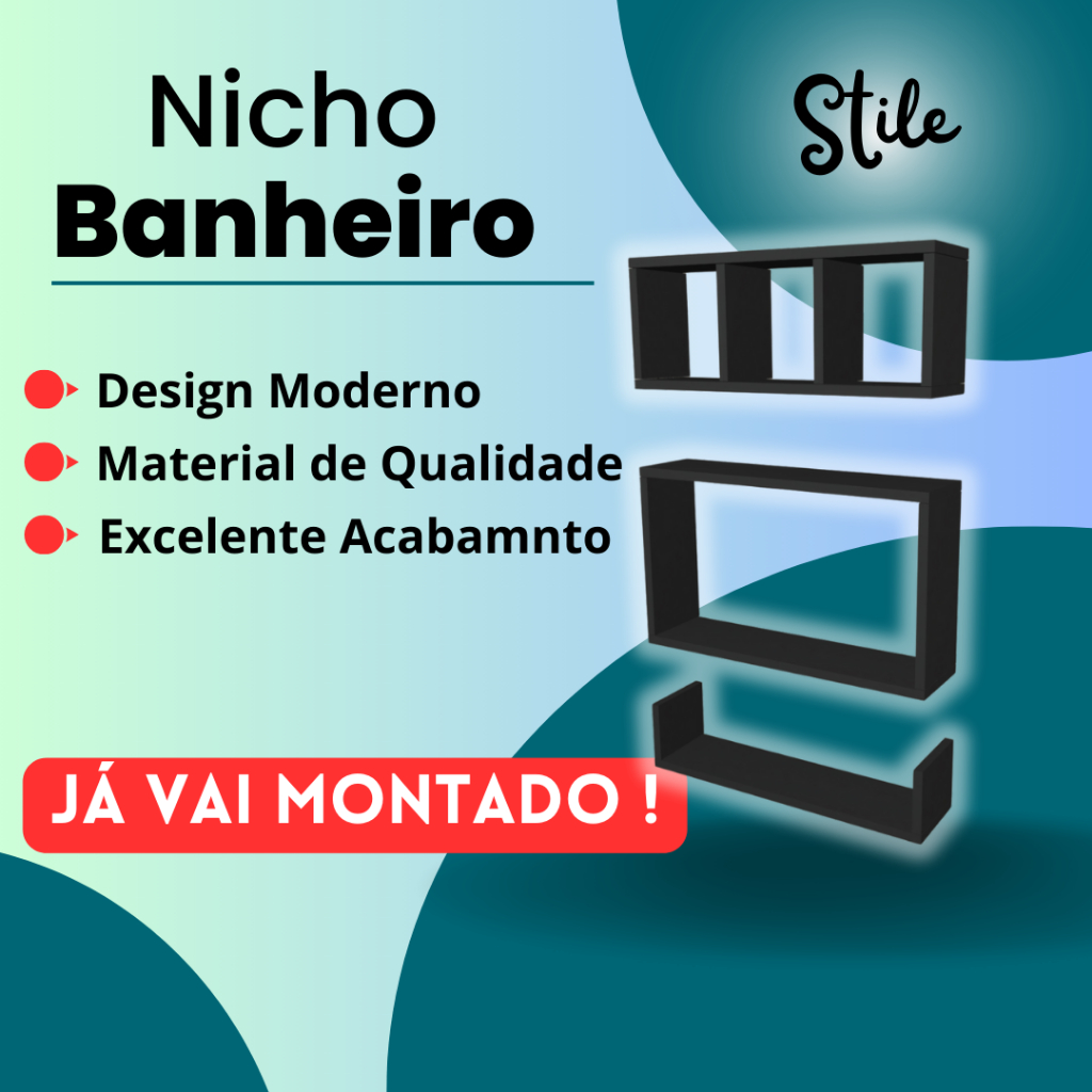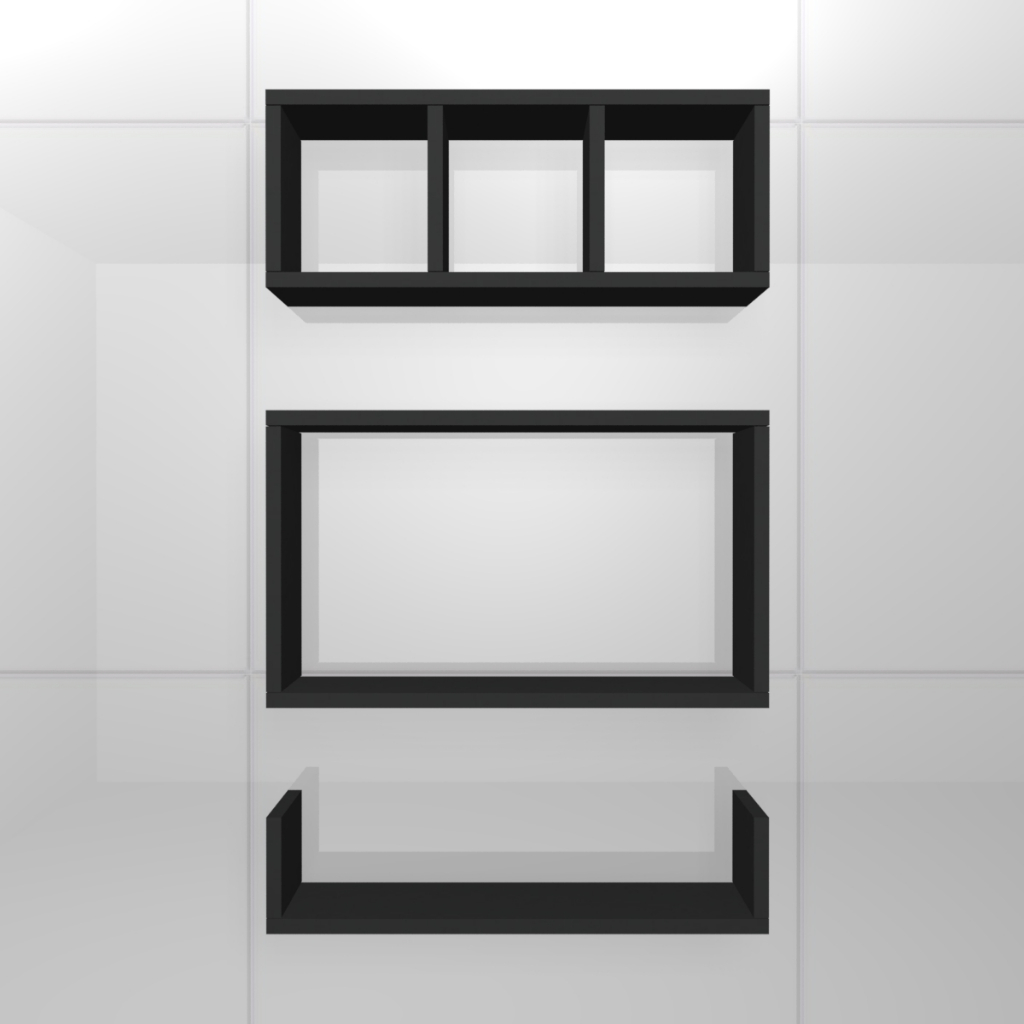 Kit 3 Nichos em MDF Preto para banheiro – Moderno, Montado e Pronto para Instalar 50 cm