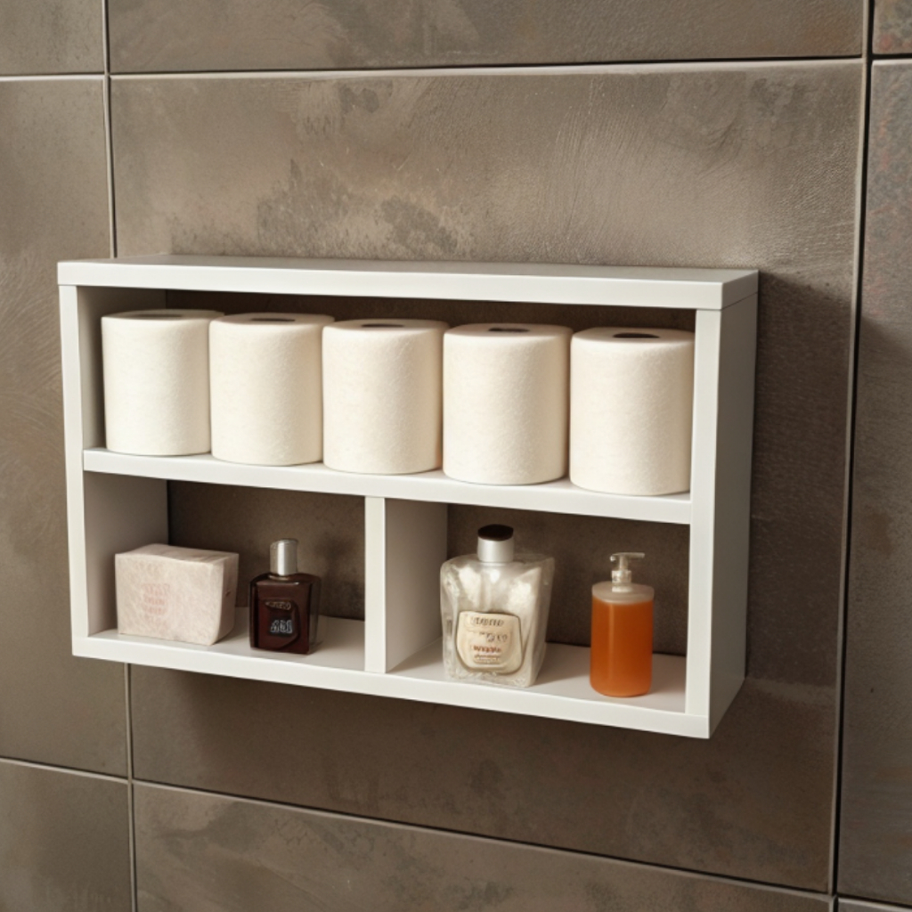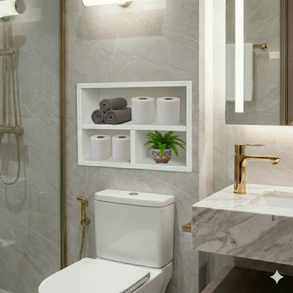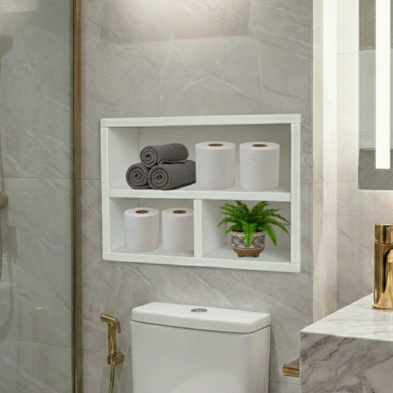 Armário Nicho Banheiro MDF Branco | Organizador de Parede para Papel Higiênico e Decoração 50cm