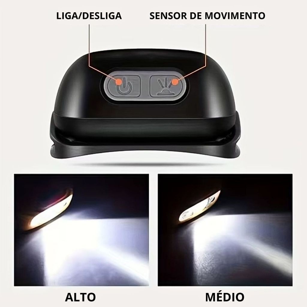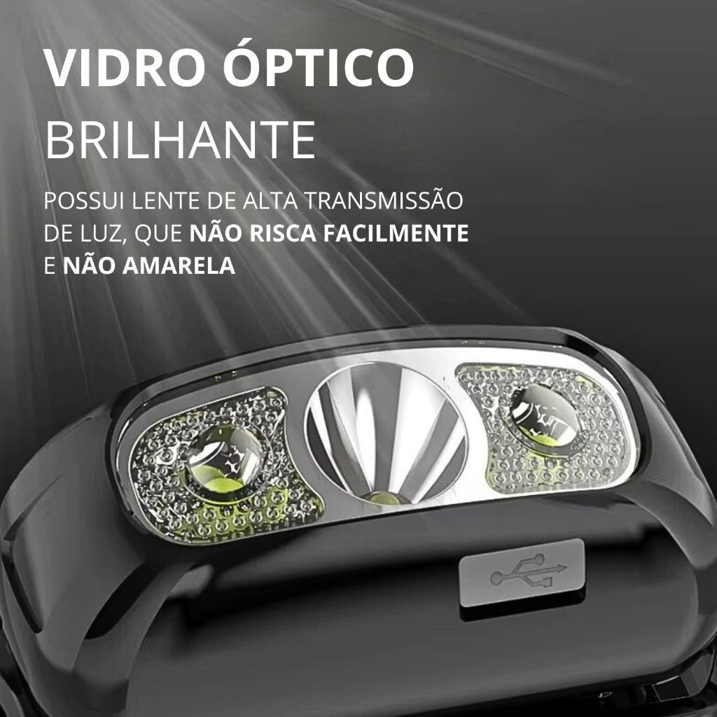 Lanterna Cabeça Premium Recarregavel Sensor Prova D'água