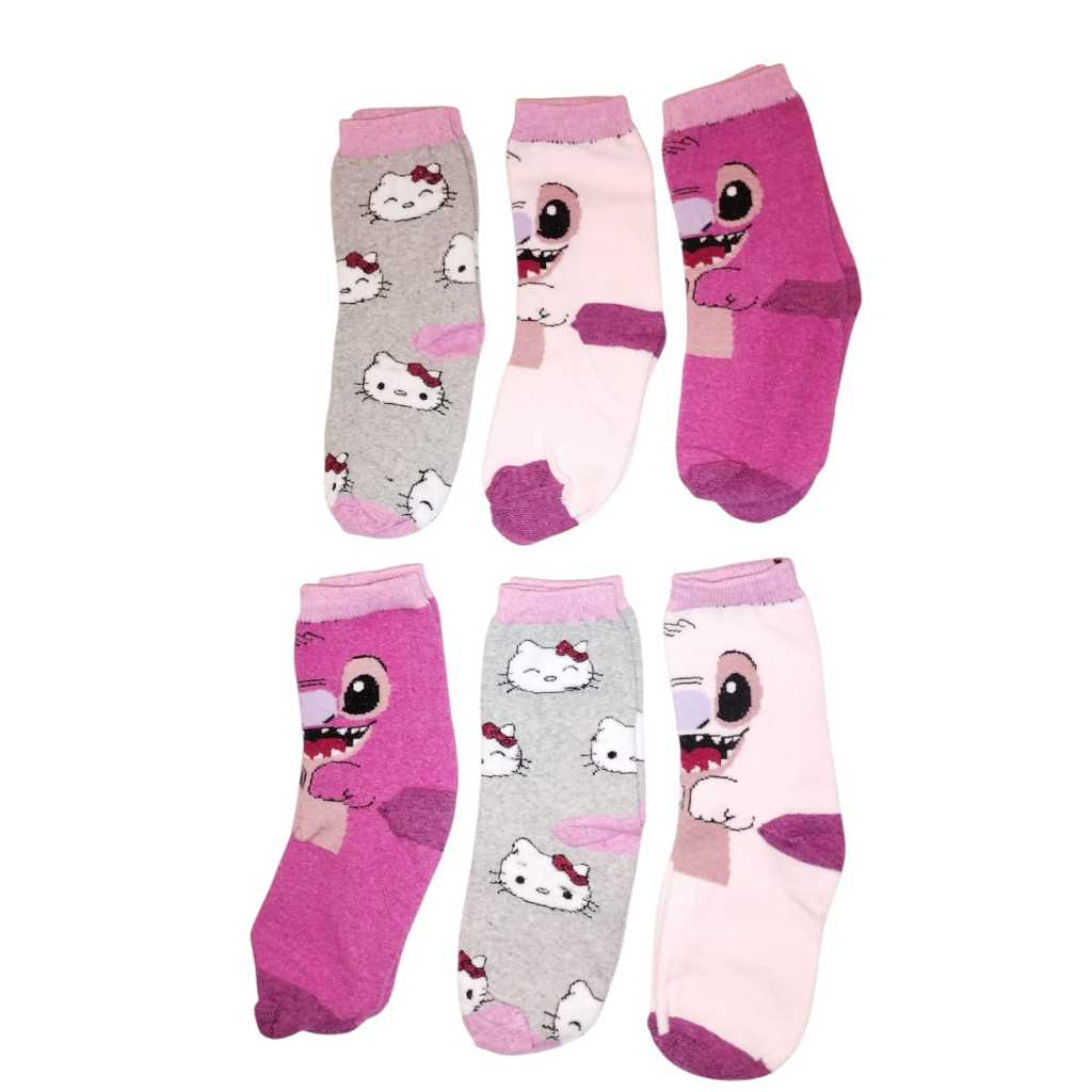 Kit 12 Meias Infantil Menina feminina personagens de algodão para o Dia a Dia