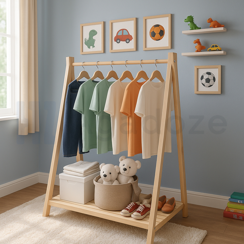 Arara De Roupas Prateleira Para Quarto Infantil Móveis Jardim e Sala Montessoriana