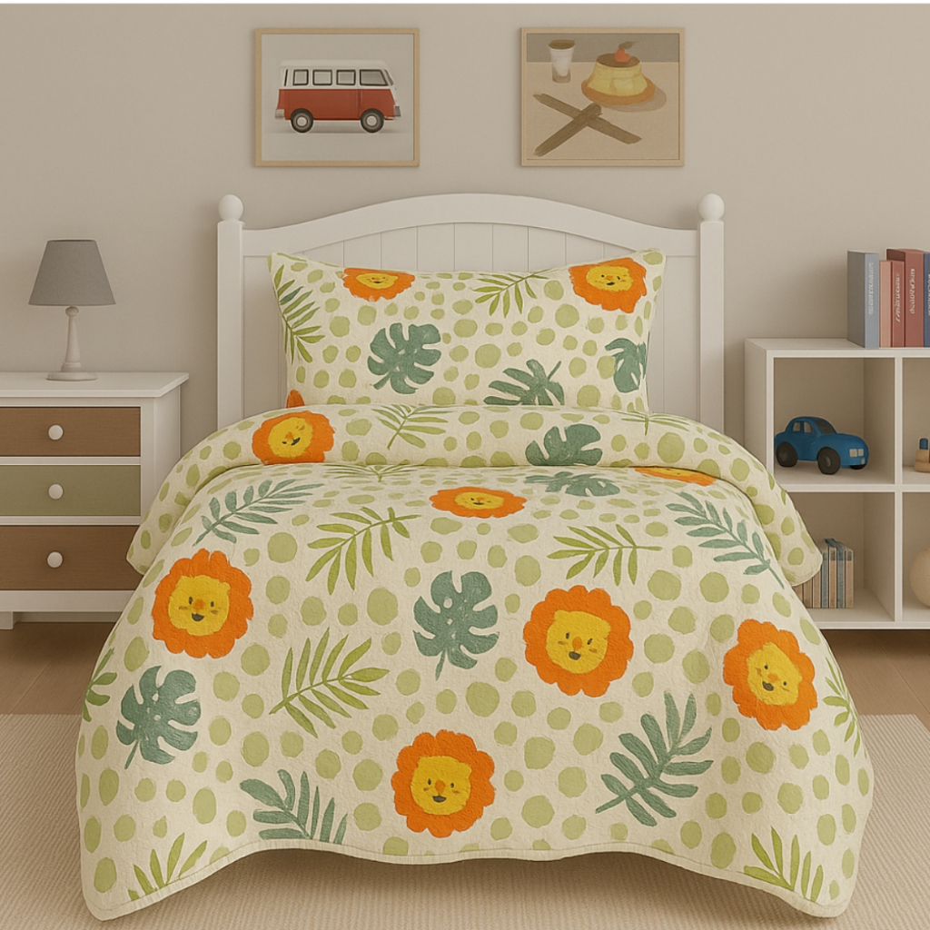Kit Colcha Boutis Cobre Leito Solteiro Infantil Menina Menino Unissex 2 Peças Dupla Face