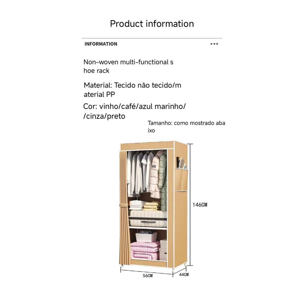Guarda Roupa Dobravel Armario Desmontavel Para Organizador De Roupa 8 Divisorias