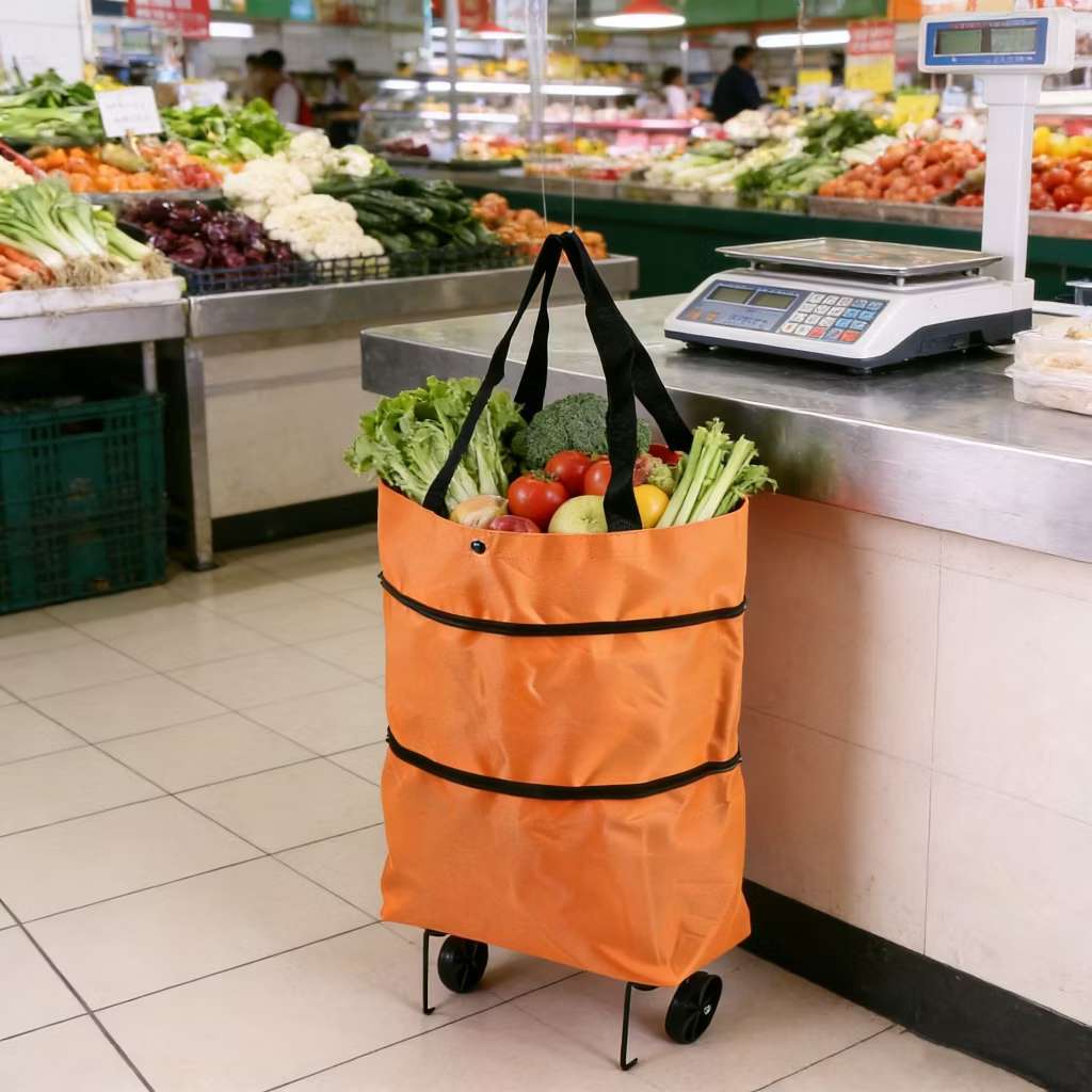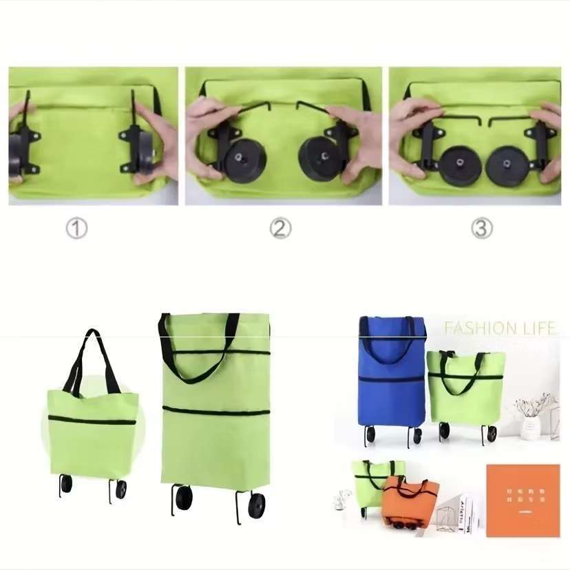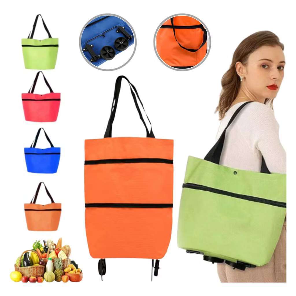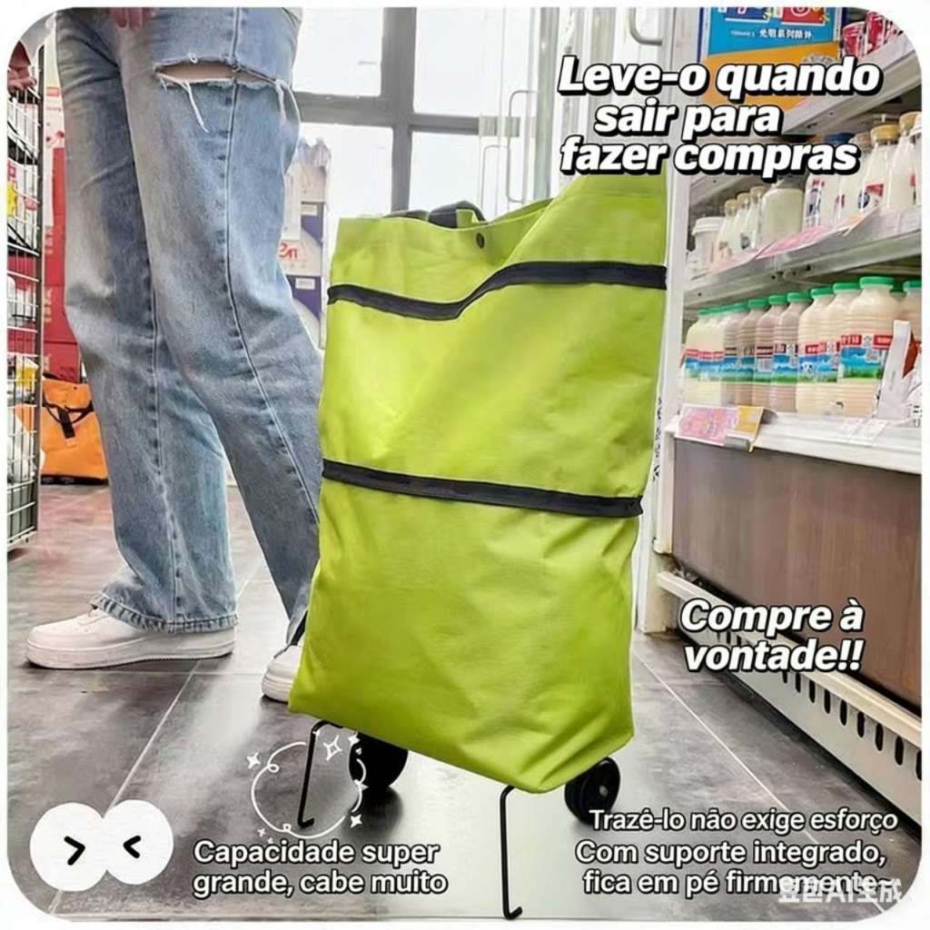 Carrinho de Compras Dobrável Vira Bolsa Com Rodinhas Multiuso Portátil Mercado, Feira, Sacolão