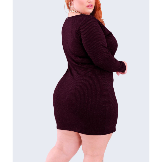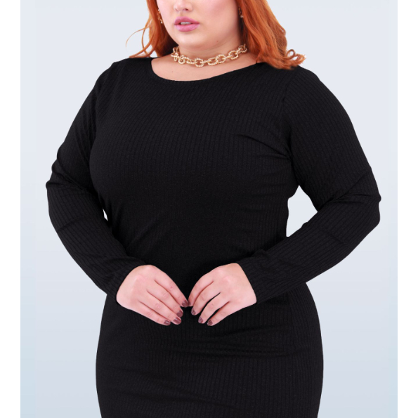 Vestido Feminino Casual Canelado Plus Size