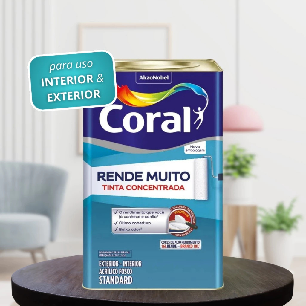 Tinta Coral Rende Muito 16L - (Branco, gelo, cinza alpino, tubarão branco, camurça, azul dos andes)