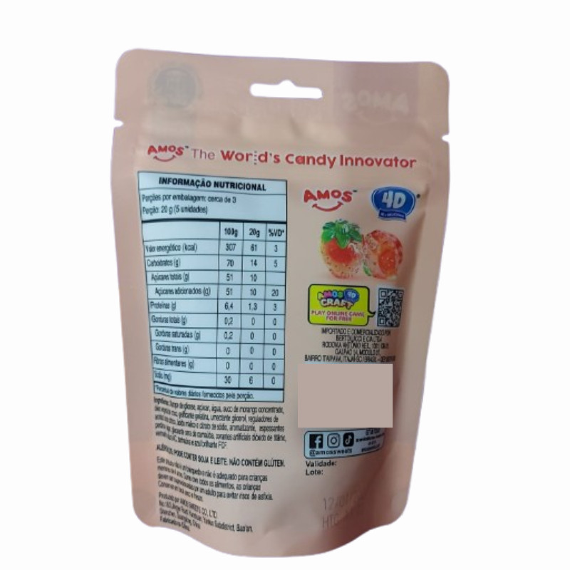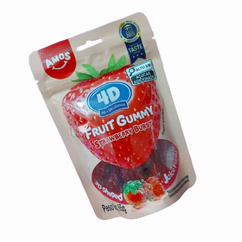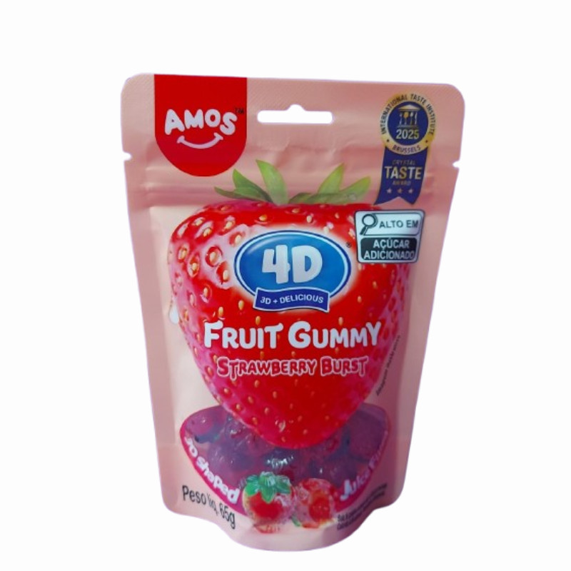 BALA DE GOMA AMOS 4D MORANGO 65G