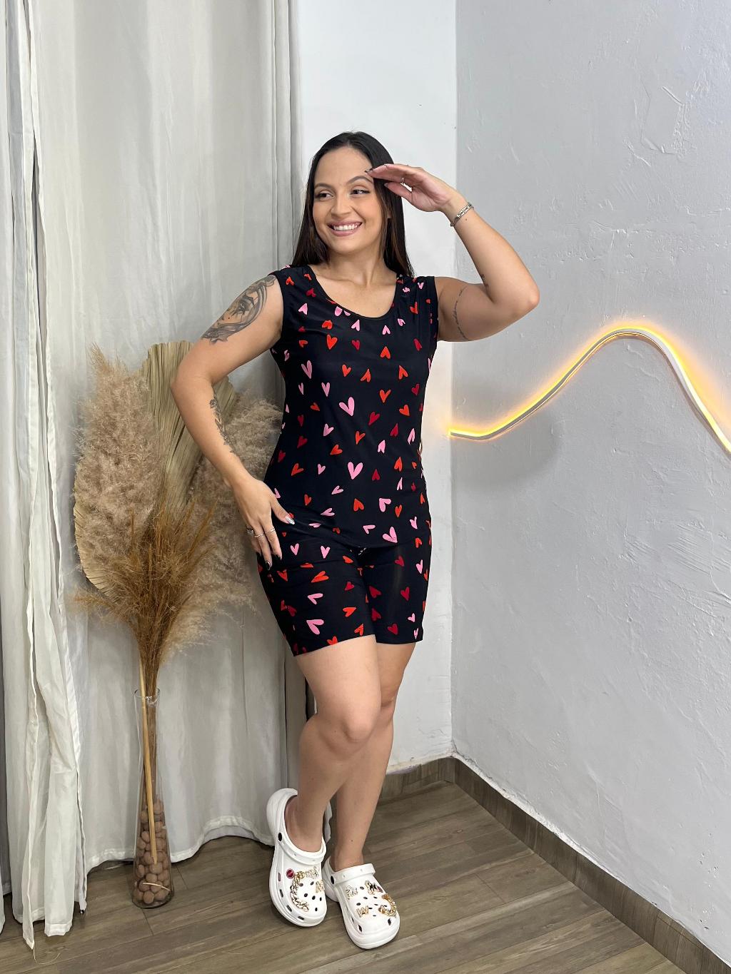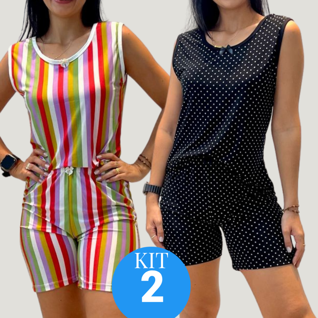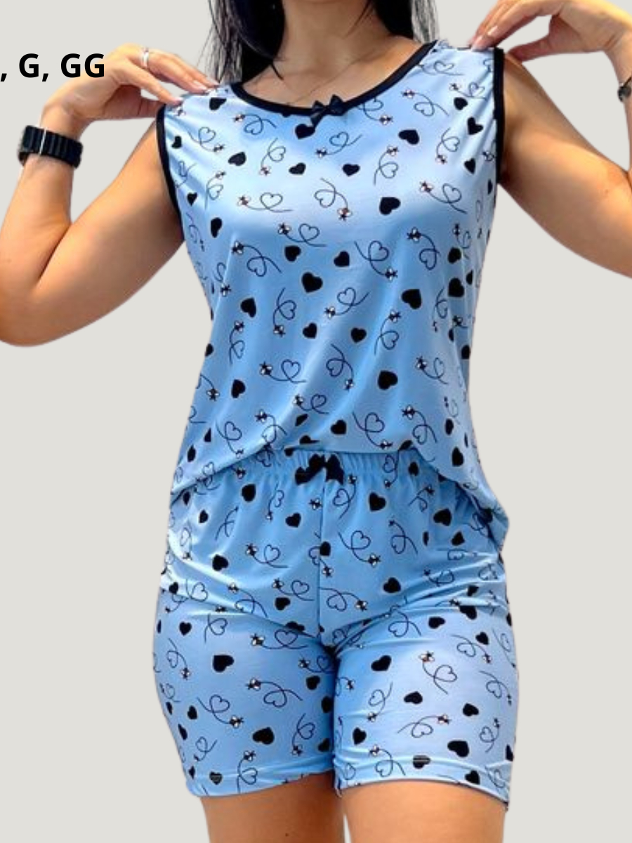 Kit 2 Pijama feminino pescador Meia Coxa adulto Baby Doll Estampado Confortável liganete Blusa sem Bojo e Short Maior