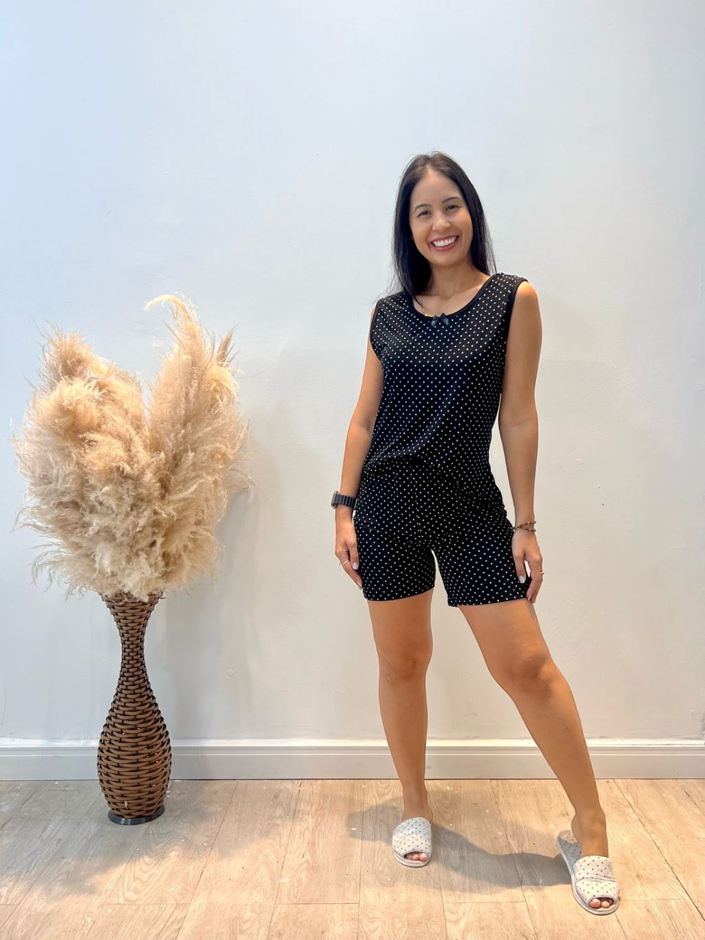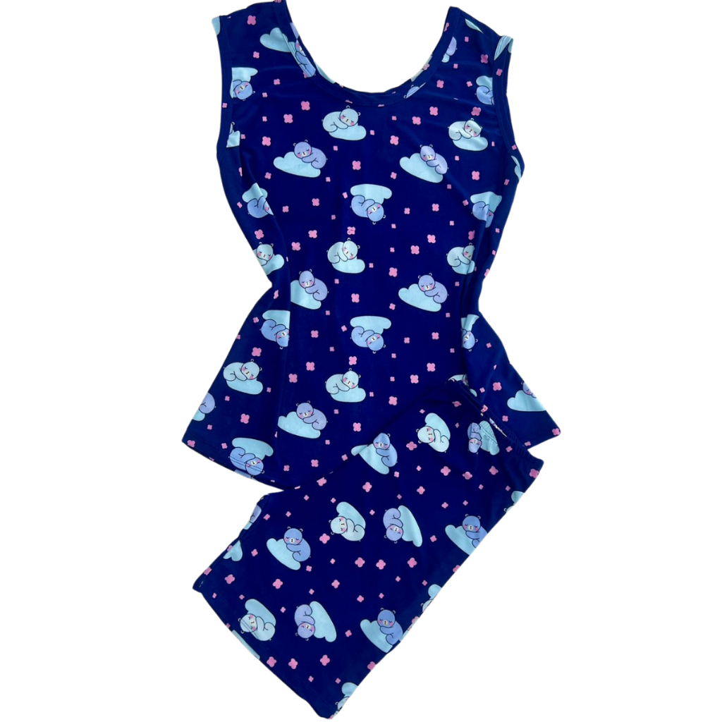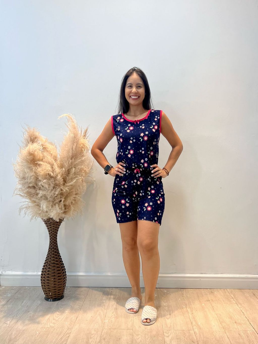 Pijama feminino adulto pescador Meia Coxa Senhora Baby Doll Estampado Confortável liganete Blusa sem Bojo Regata Short
