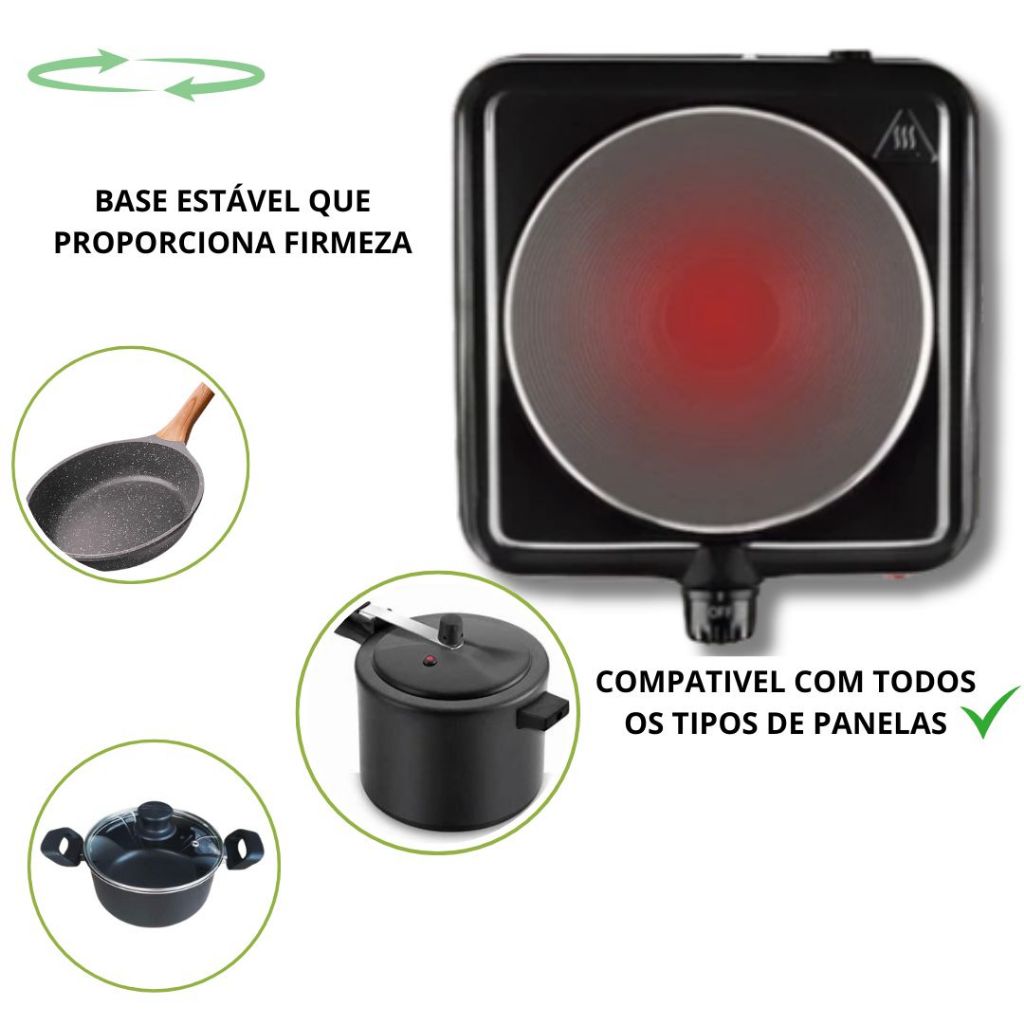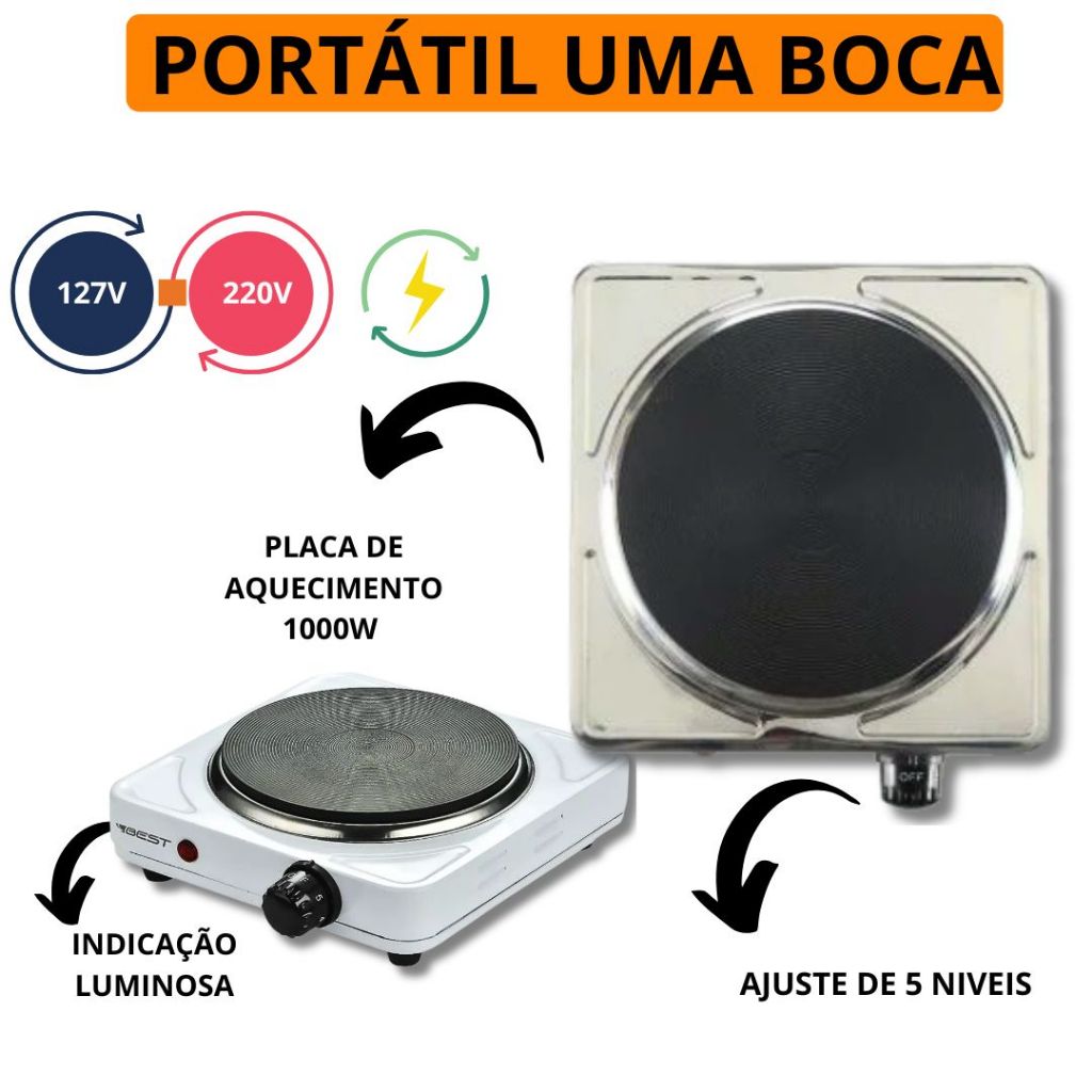Fogão Cooktop Fogareiro Elétrico Portátil 1 Bocas 1000W 5 Temperaturas Serve em Qualquer panela
