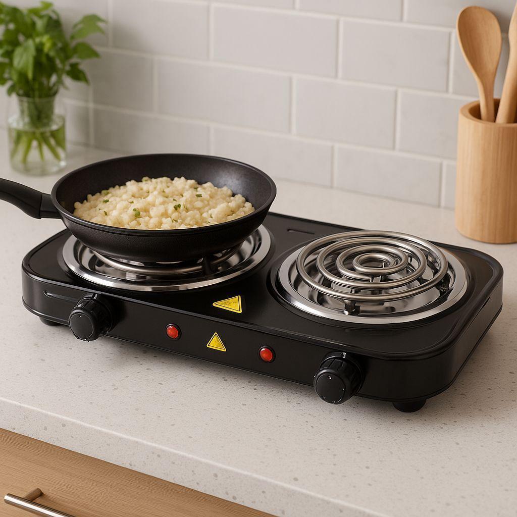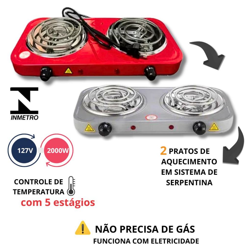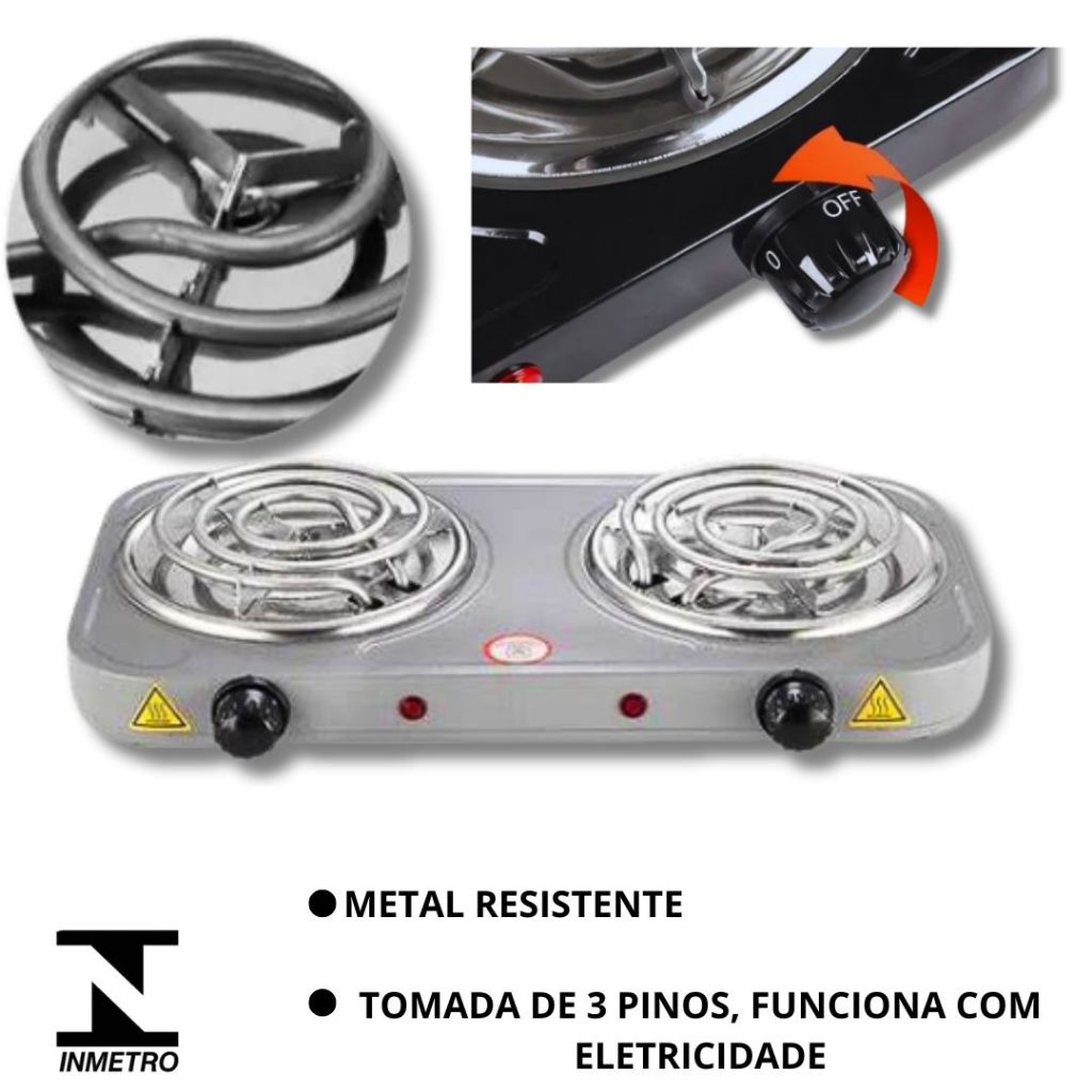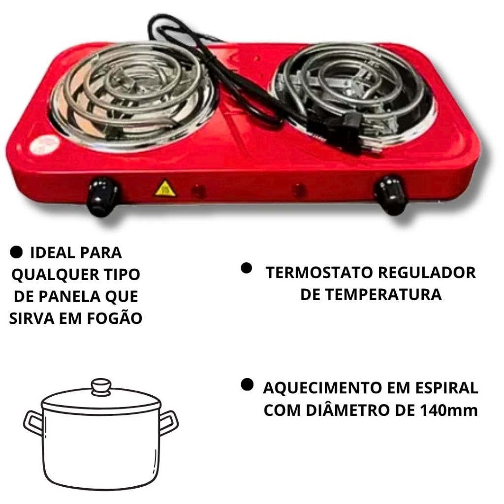 Fogareiro Elétrico 2 Bocas Portátil Camping Cooktop Cozinha 110v 220v Viagem Premium
