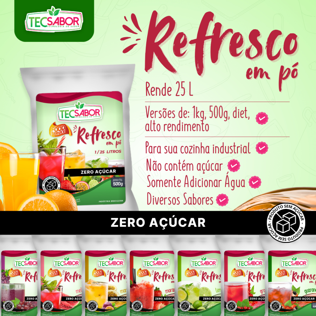 Refresco em Pó Zero 500g Rende 25 L TecSabor