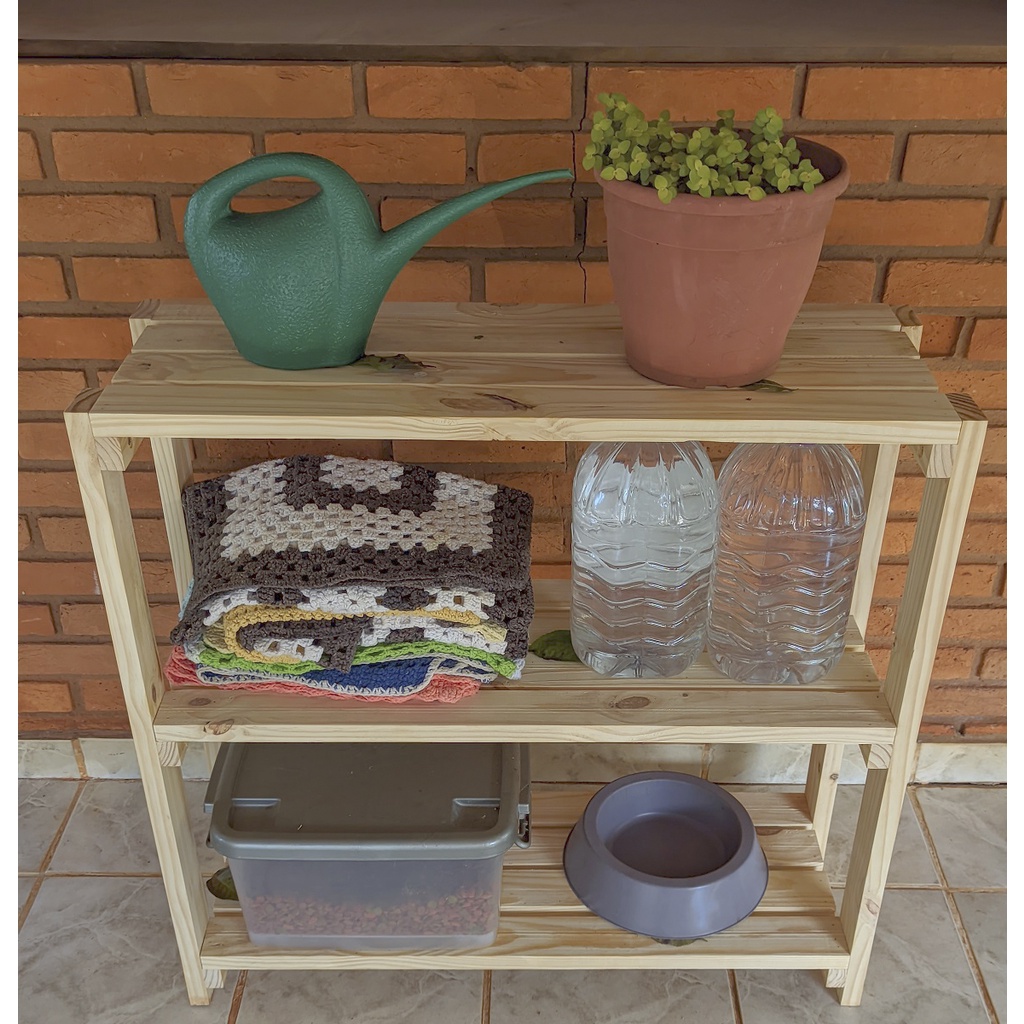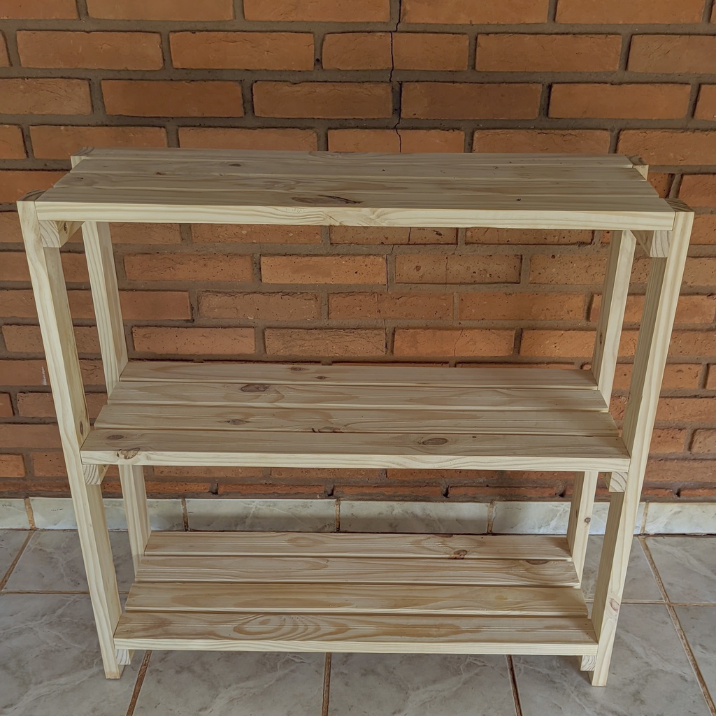 Estante com 3 Prateleiras de Madeira Maciça Pinus