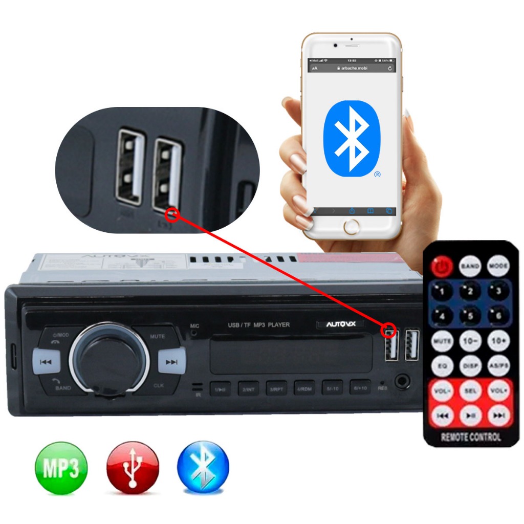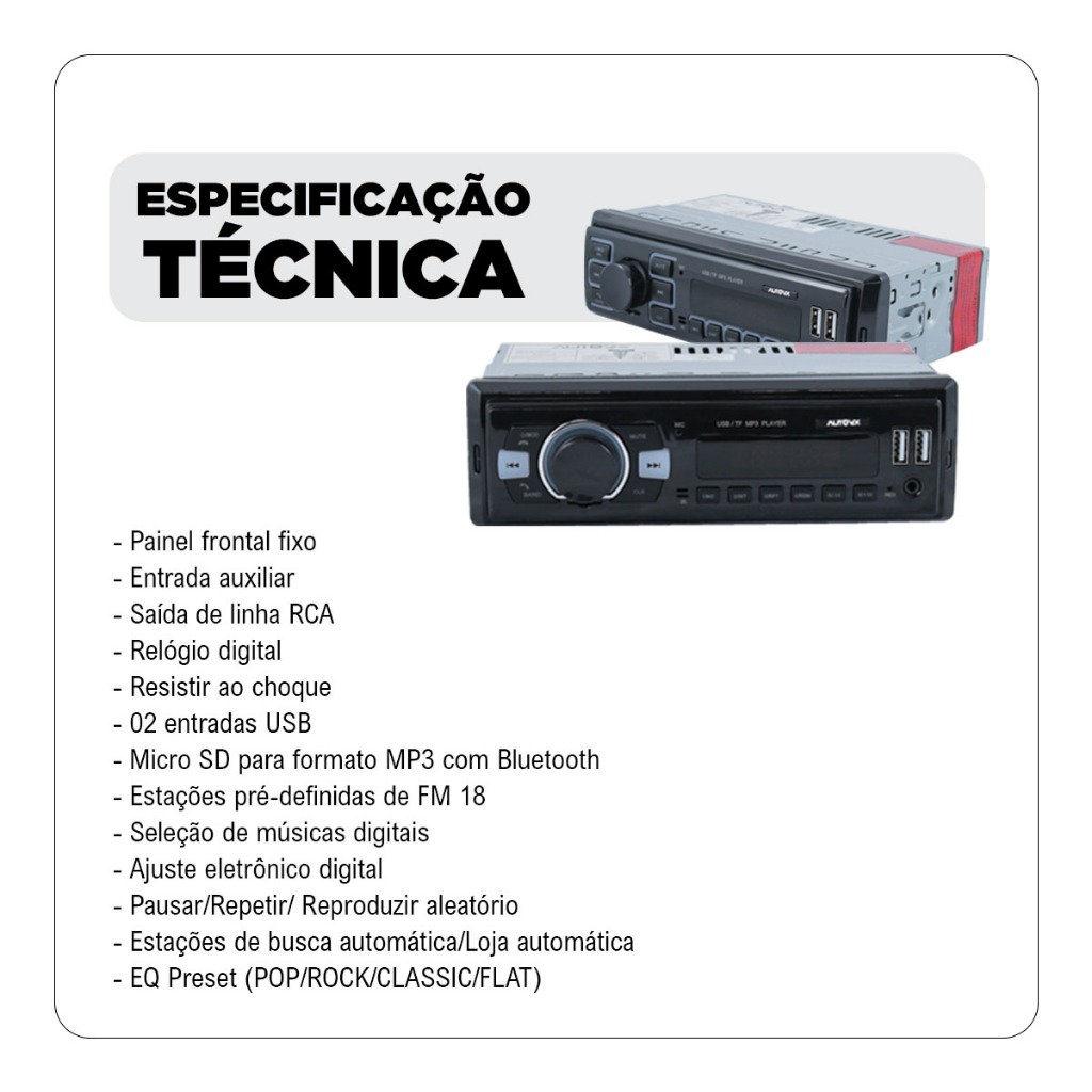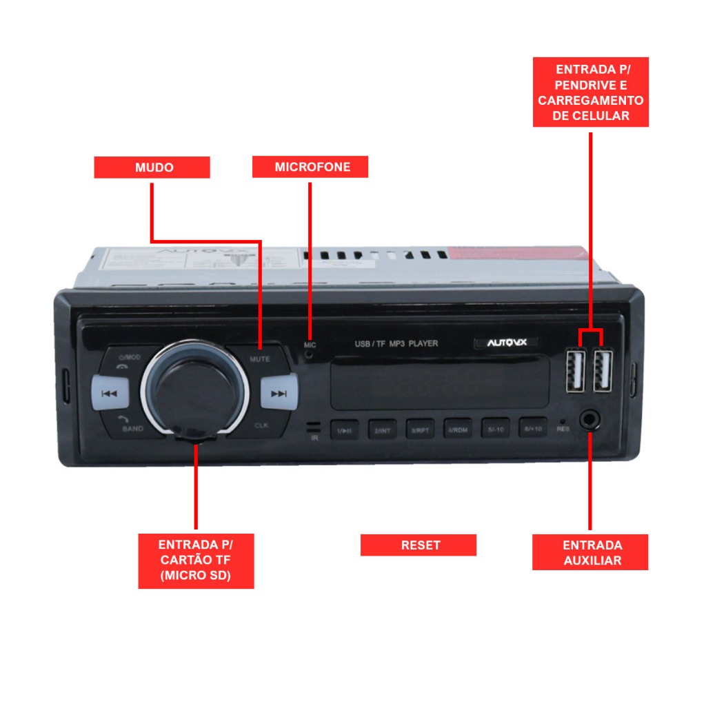 Aparelho De Som Automotivo Com 2 Entradas Usb Bluetooth Leitor Sd MP3 Radio Bluetooth Automotivo