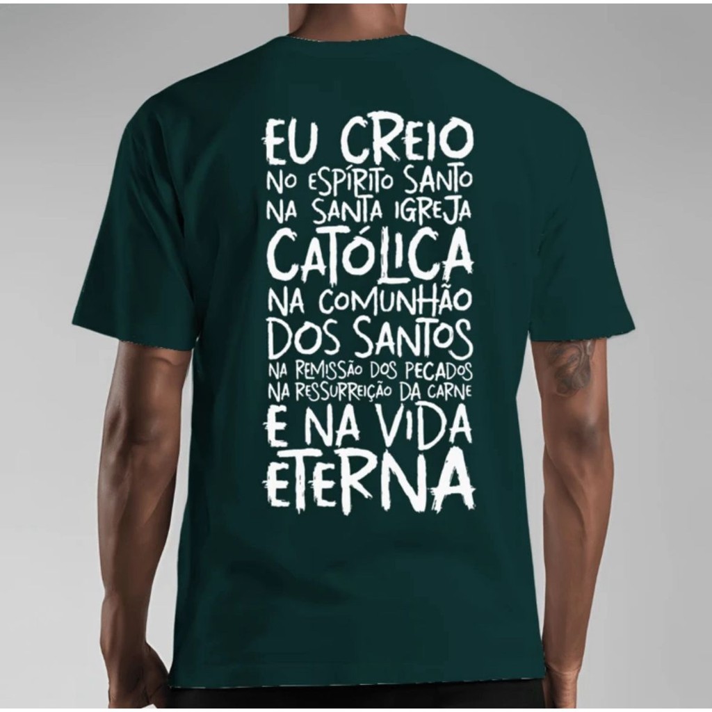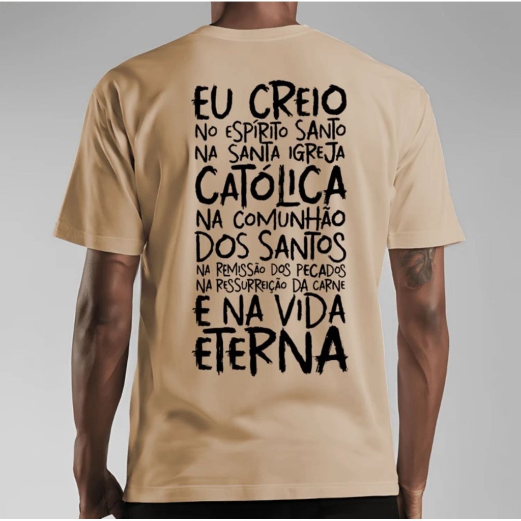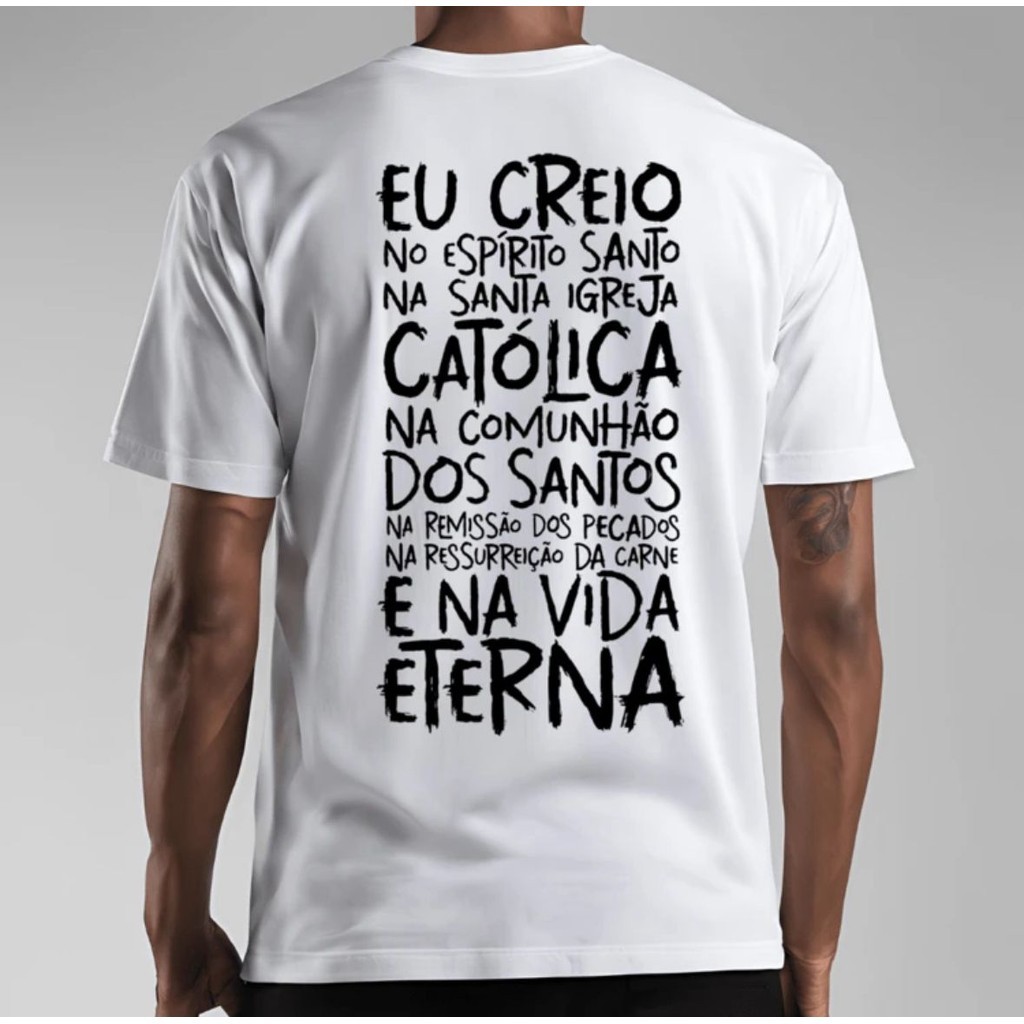 Camiseta Católica Oração Credo Camisa Estampada 100% Algodão Blusa Básica Religiosa