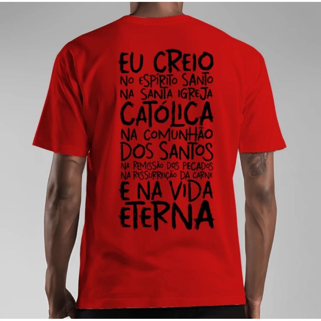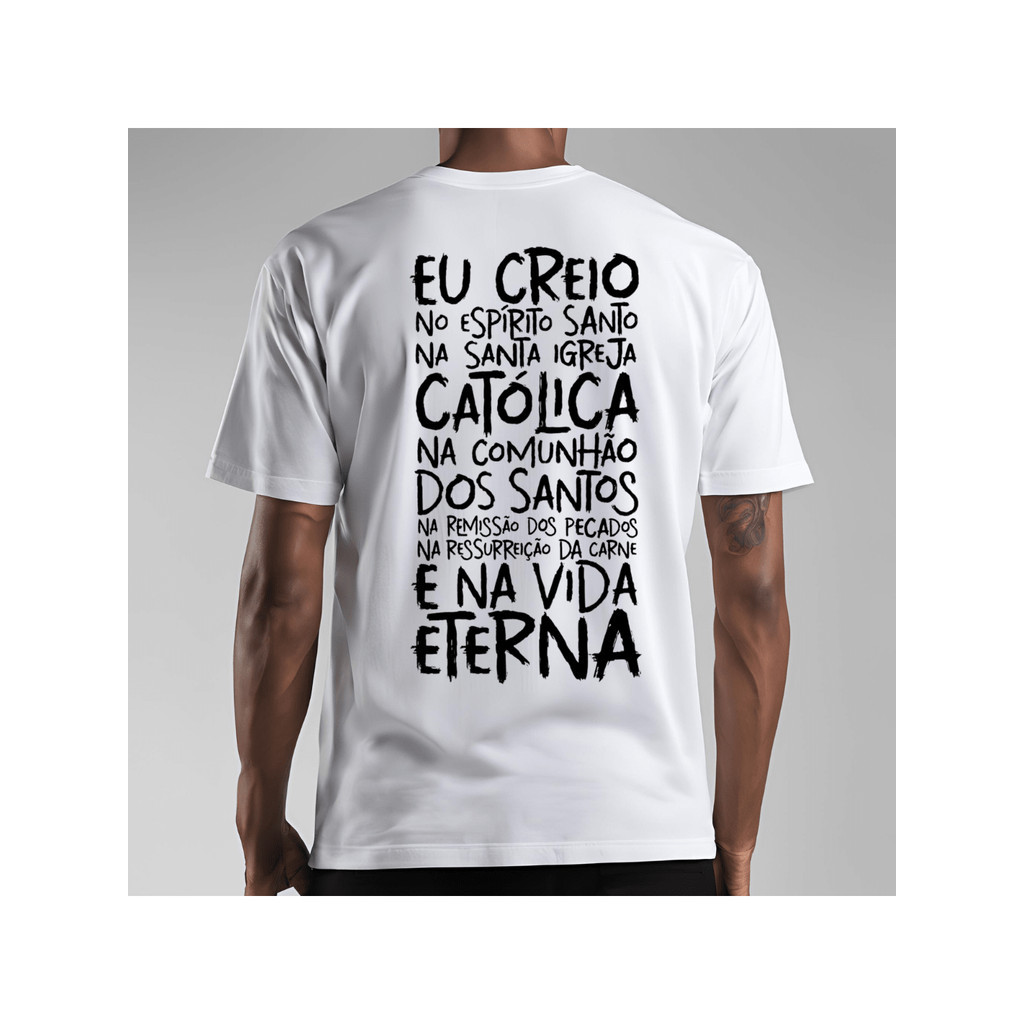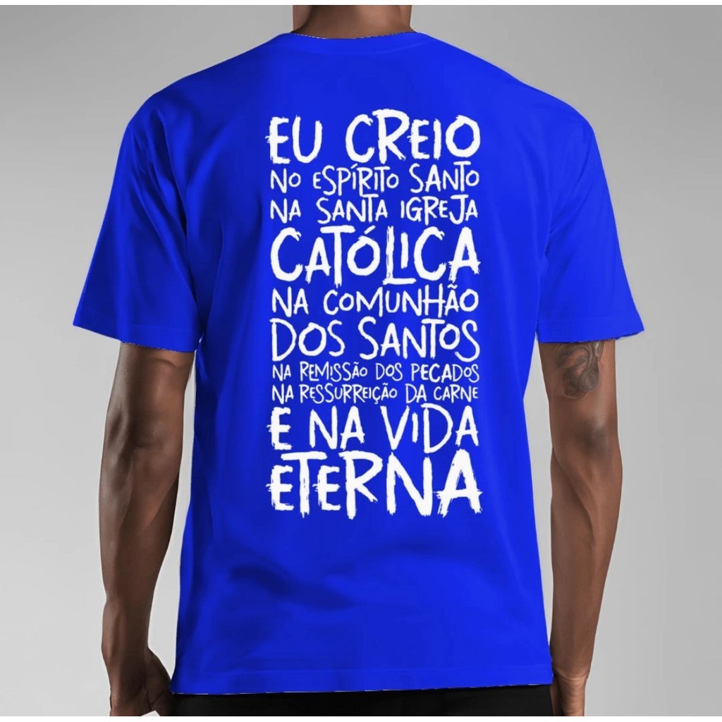 Camiseta Católica Oração Credo Camisa Estampada 100% Algodão Blusa Básica Religiosa