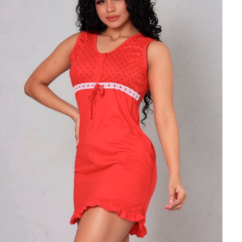 Kit jogo de 2 Camisolas feminina Vermelha - azul pós parto, gestantes sensual pijama roupa de dormi