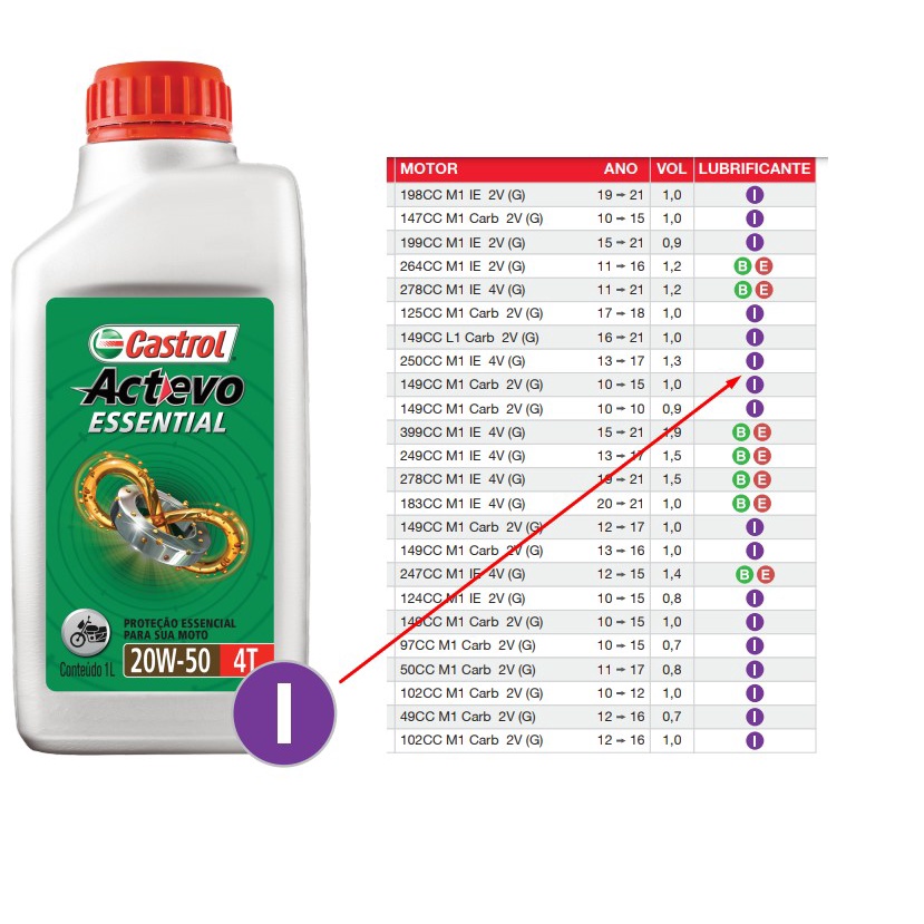 Oleo Castrol Actevo Essential 4T 20W50 1 Litro