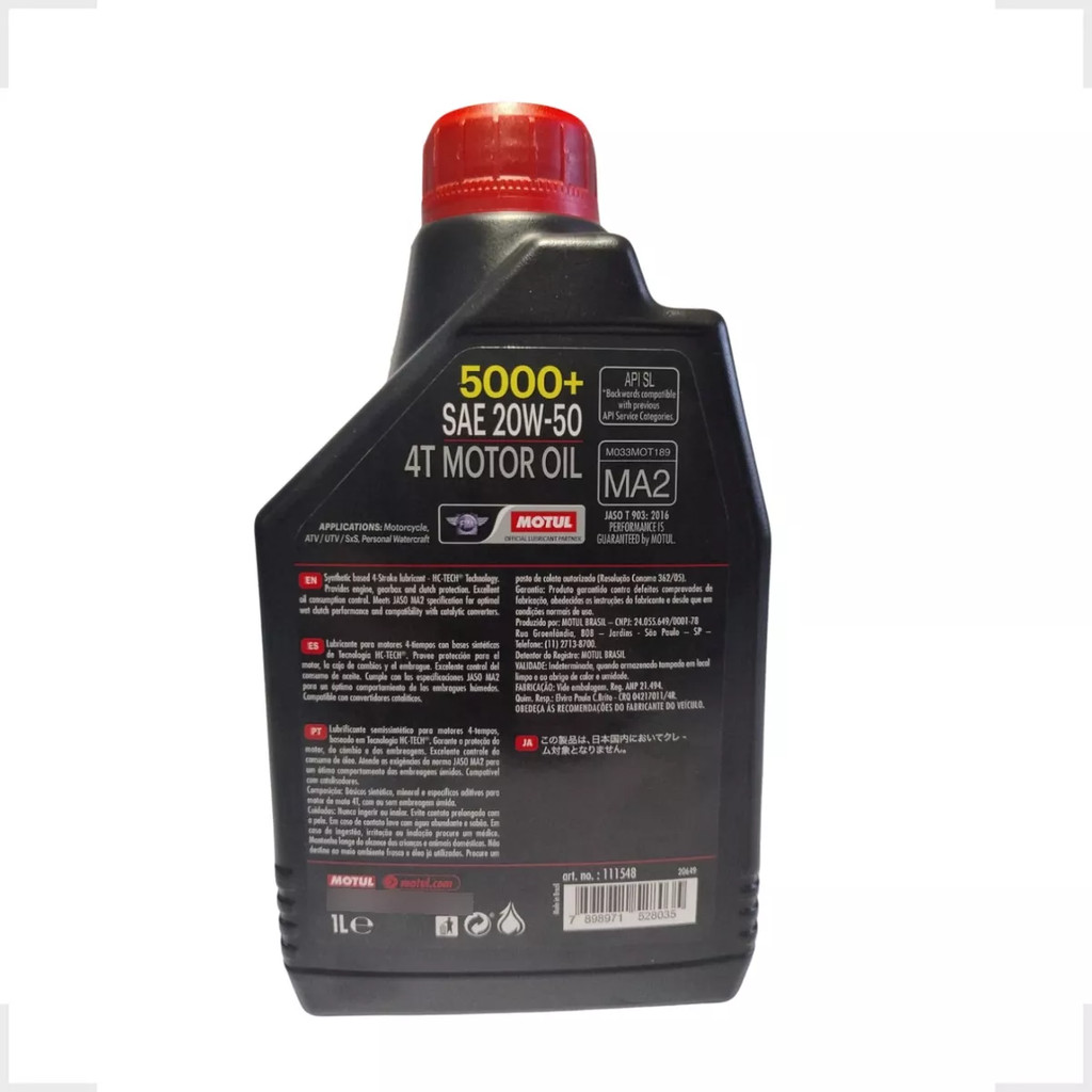 KIT 2 OLEO MOTUL 5000+ 4T 20W50 SEMI SINTETICO