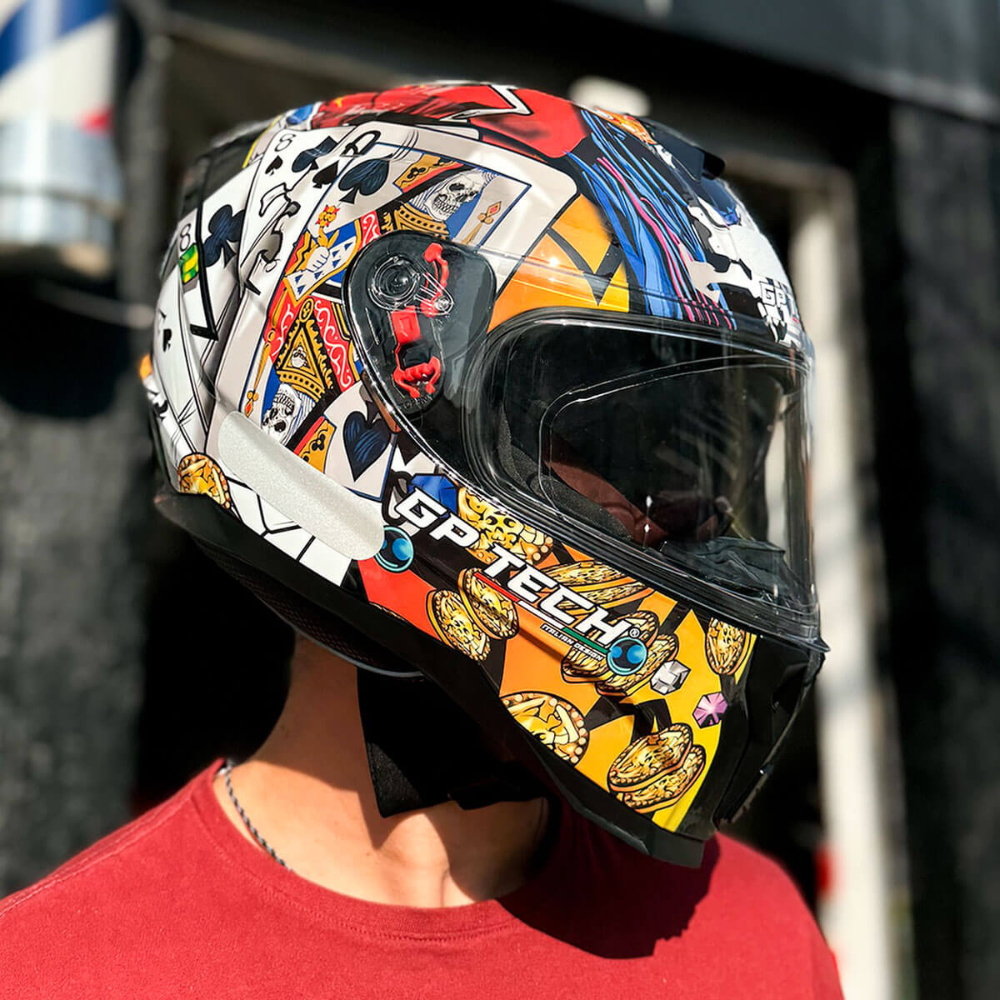 CAPACETE MOTOCICLISTA GP TECH ULTRA LAS VEGAS COM VISEIRA INTERNA FUMÊ