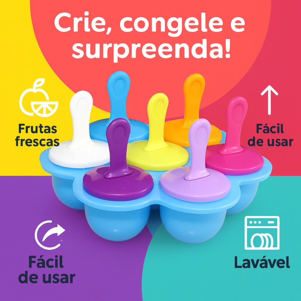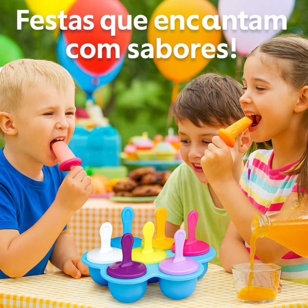 Forminha Colorida Para 7 Picolé Sorvete Peitolé Bebê e Infantil, Ideal Para Festas e Lanches