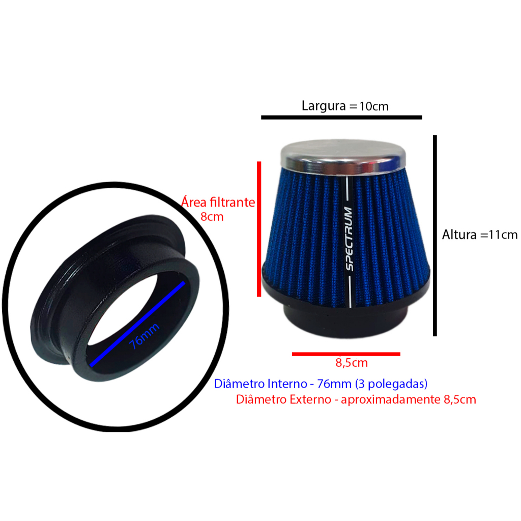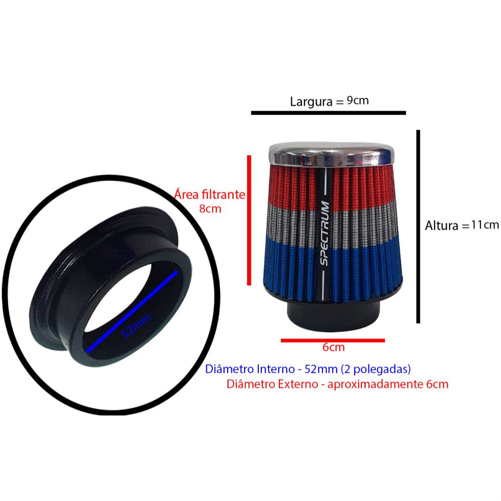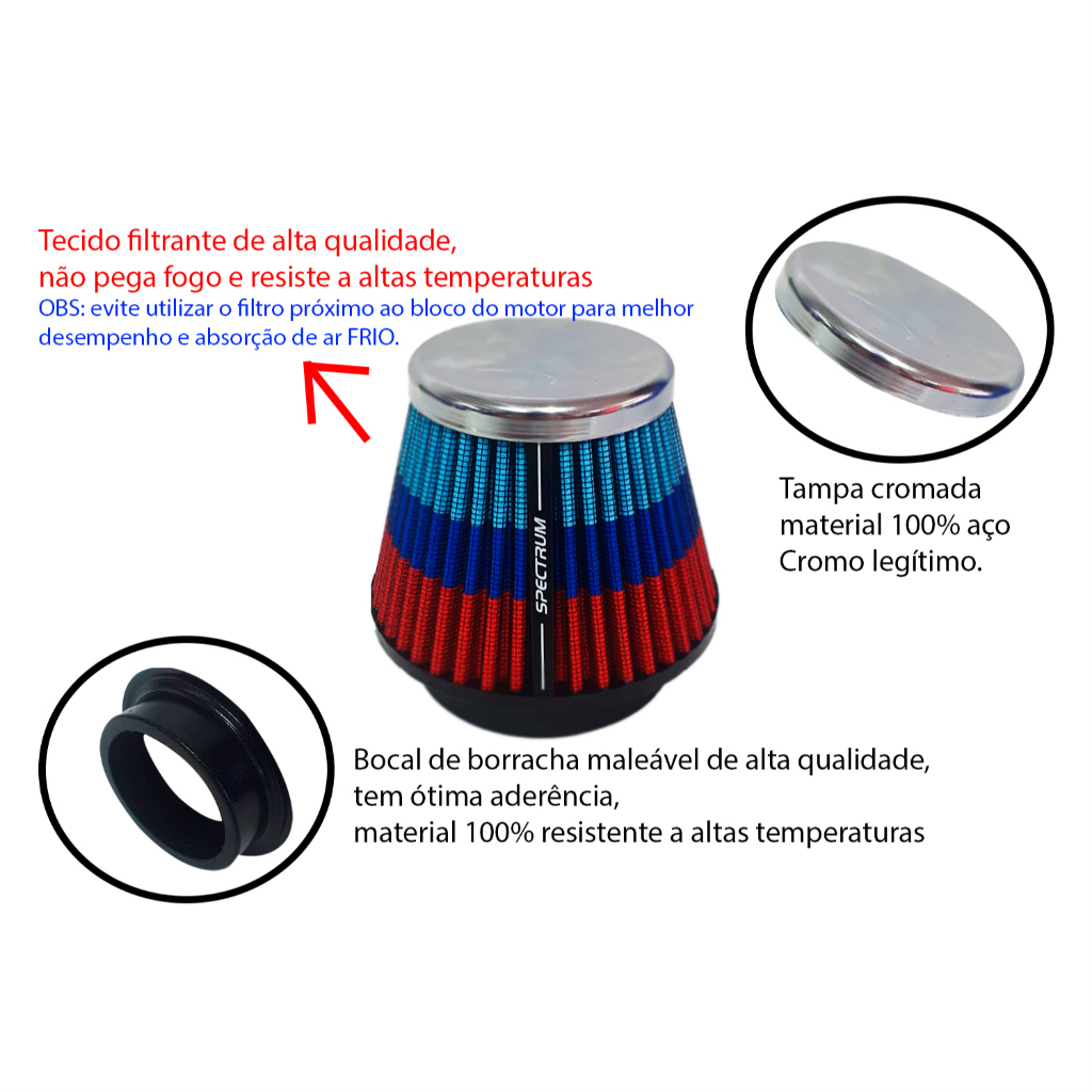 Filtro de Ar Esportivo Spectrum Mono Fluxo Cromado- Germany