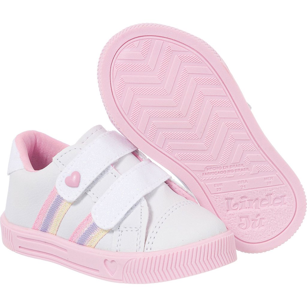 Tênis Infantil Menina Brilho Delicado Coração Criança Confortável Estiloso Star Bebê Volta ás Aulas