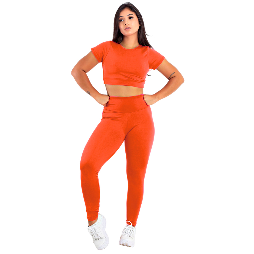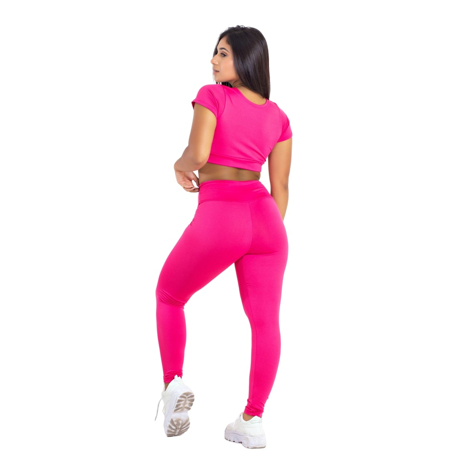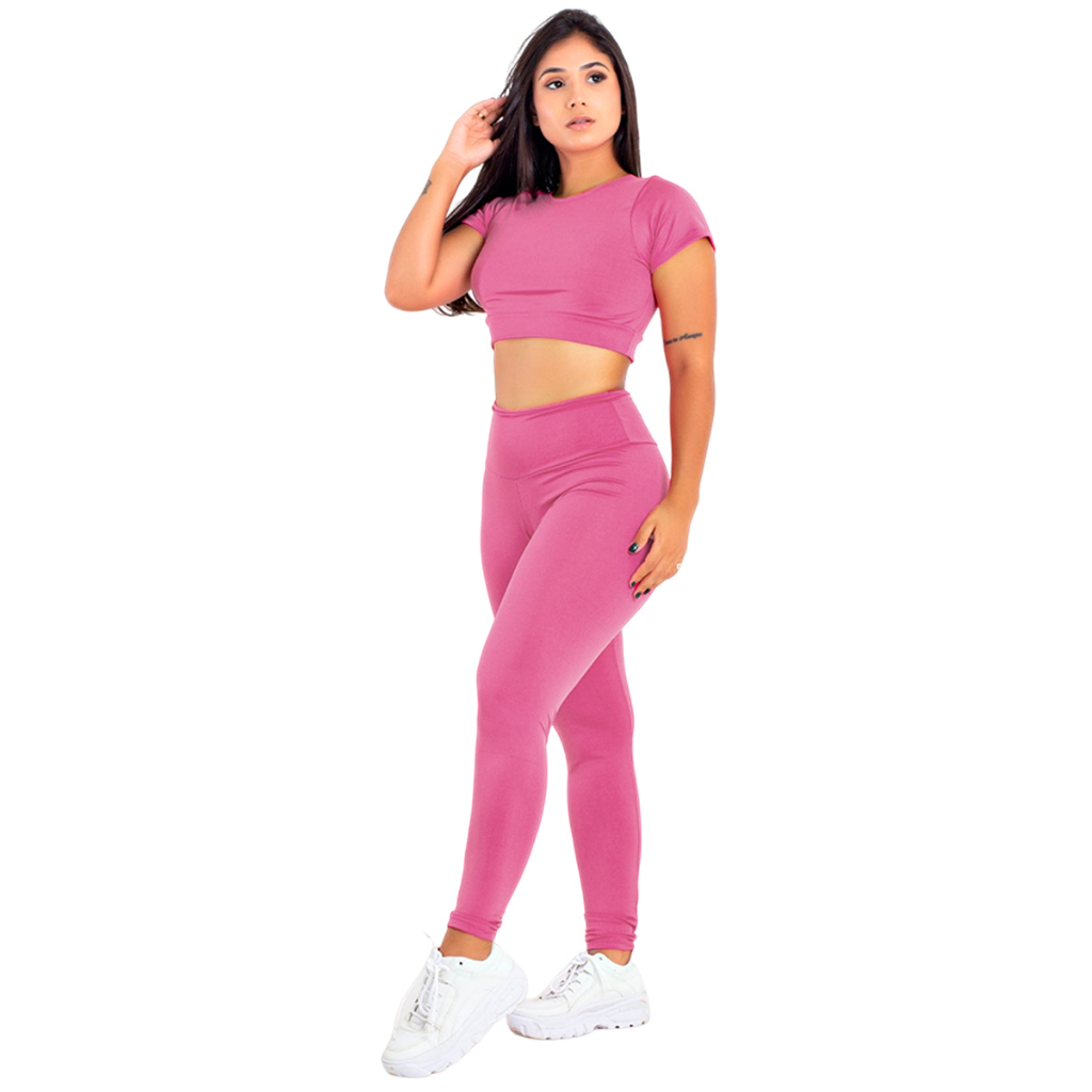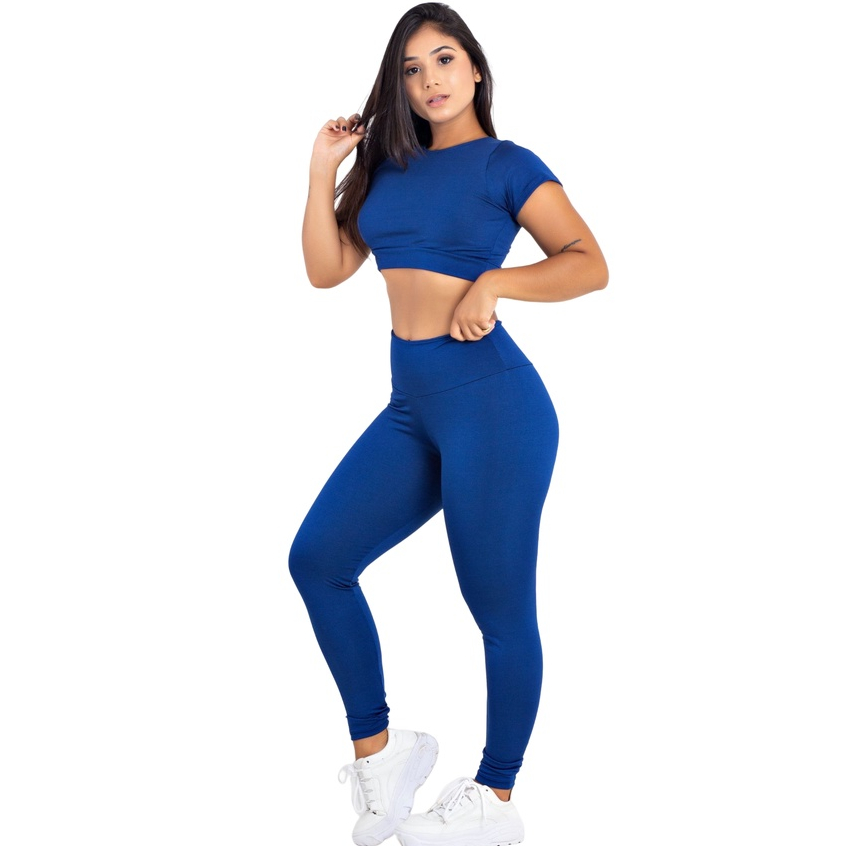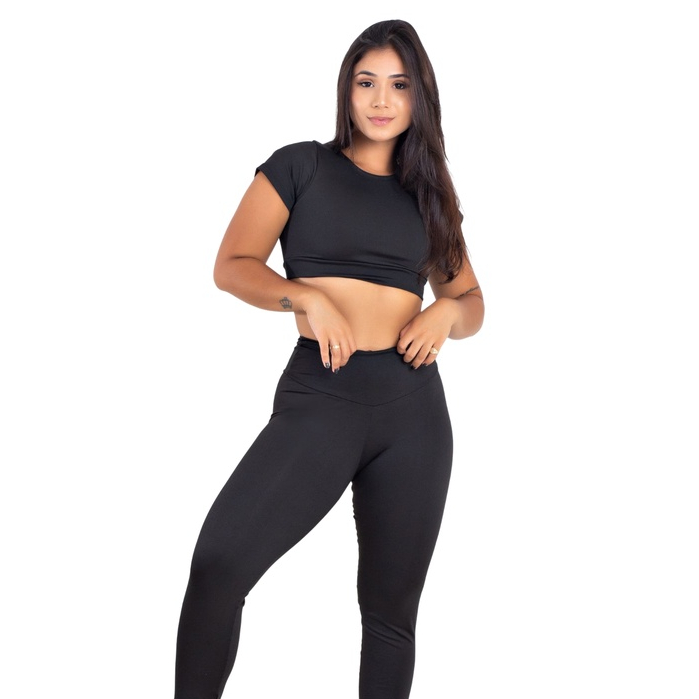 Conjunto Academia Top Croped Calça Legging Cintura Alta Suplex | 901.853
